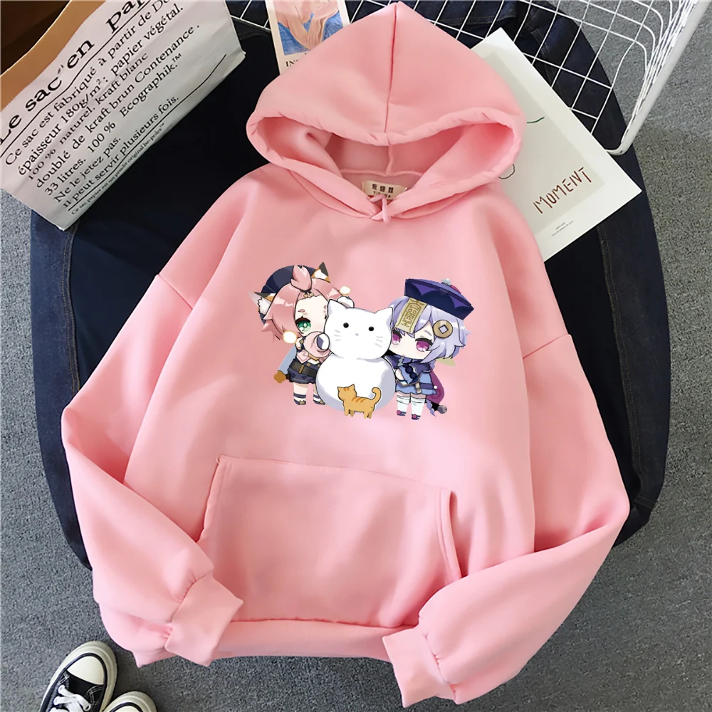 Мультфильм Genshin воздействия ци и Диона Толстовка для мужчин Harajuku Kawaii манга графическое верхняя одежда, в Корейском стиле, модная одежда с длинными рукавами, свитшоты