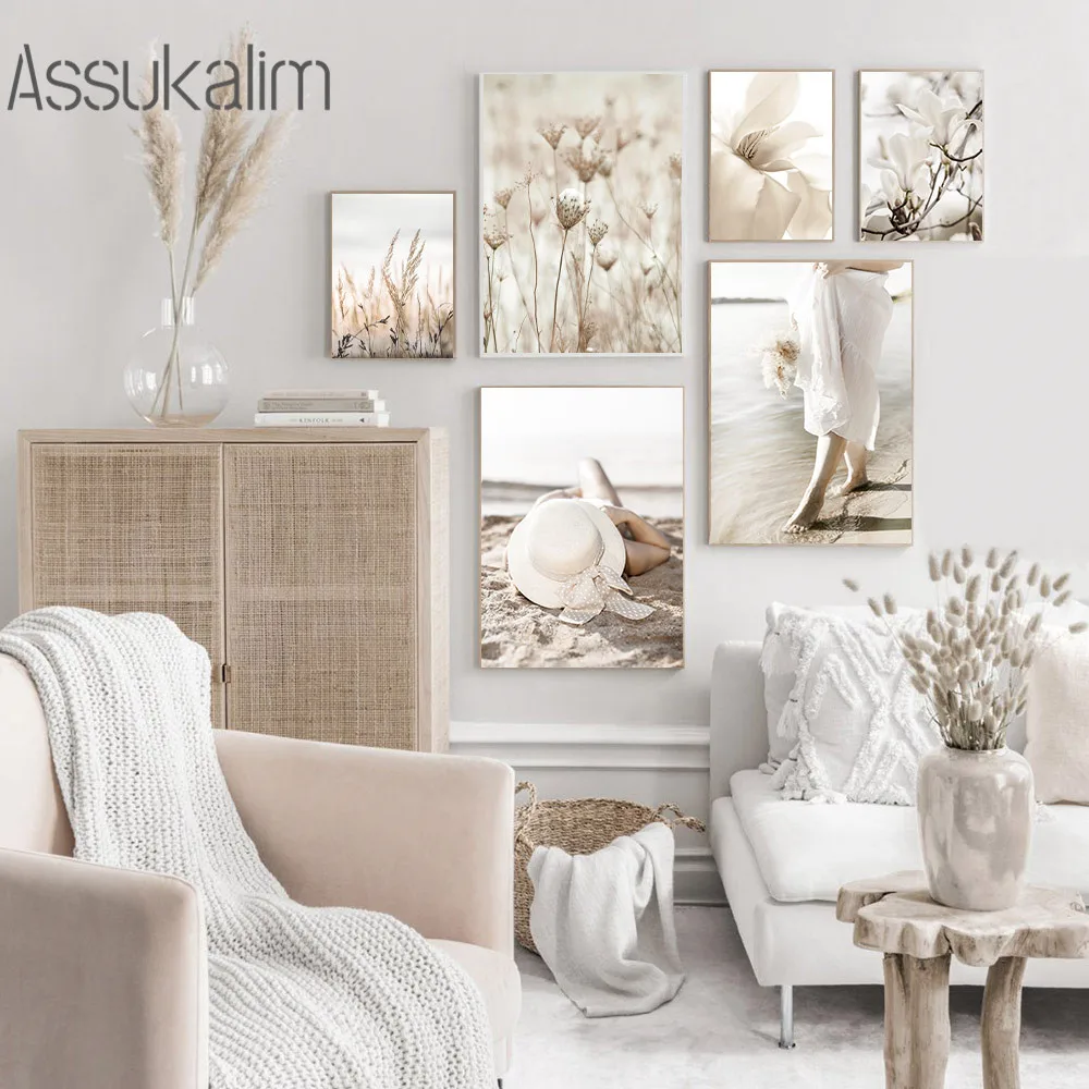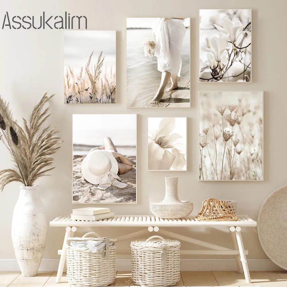 Настенная картина с изображением пляжной девушки лилии, белый жемчуг, настенные художественные принты, ландшафтный постер, Скандинавская роспись, декор для гостиной