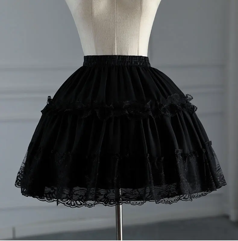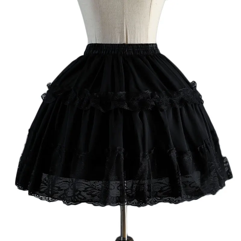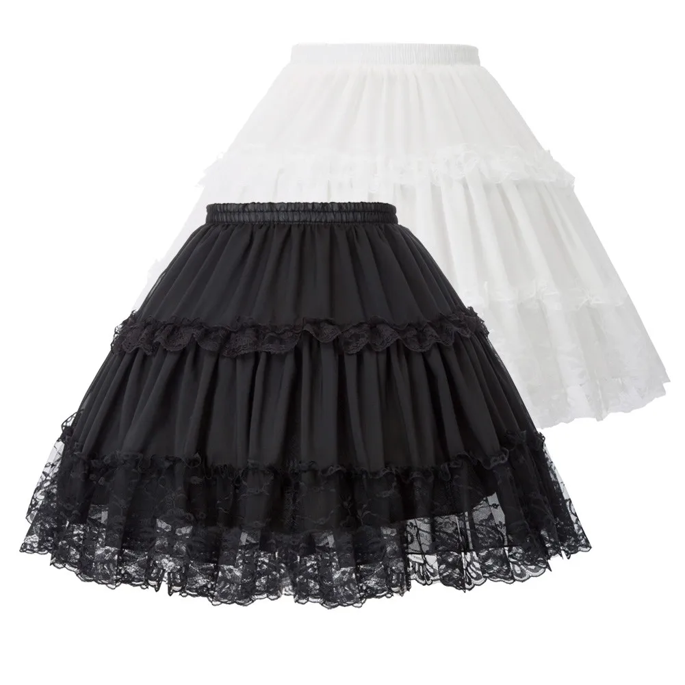Женские юбки YYCZF в стиле "Лолита", кринолиновая подъюбник, вечерняя Нижняя юбка с эластичной талией и оборками, черная готическая юбка-качели