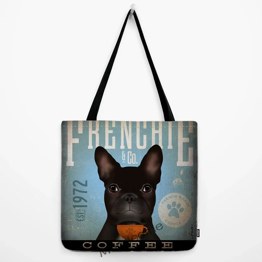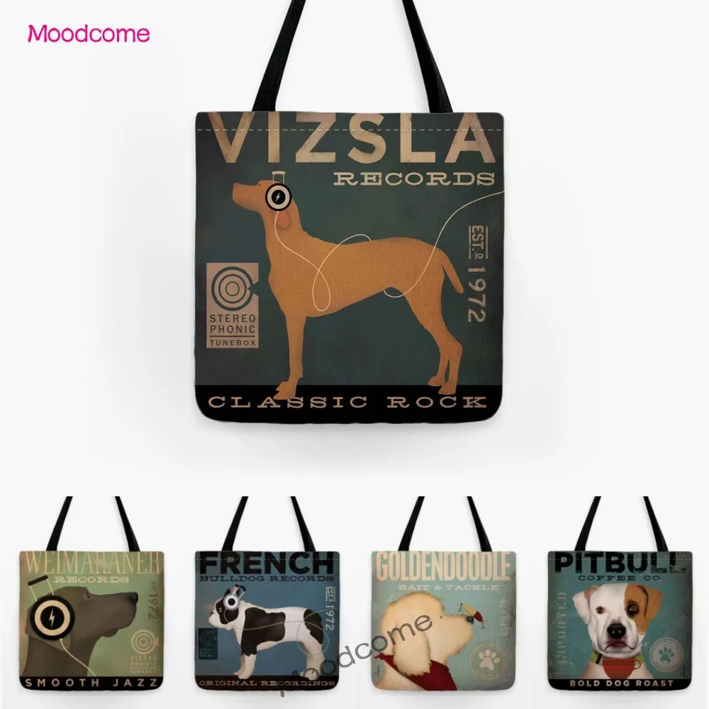 Большая Наплечная Сумка Vizsla, с изображением французского бульдога, таксы, винтажный постер с собакой, водонепроницаемая Льняная сумка-тоут
