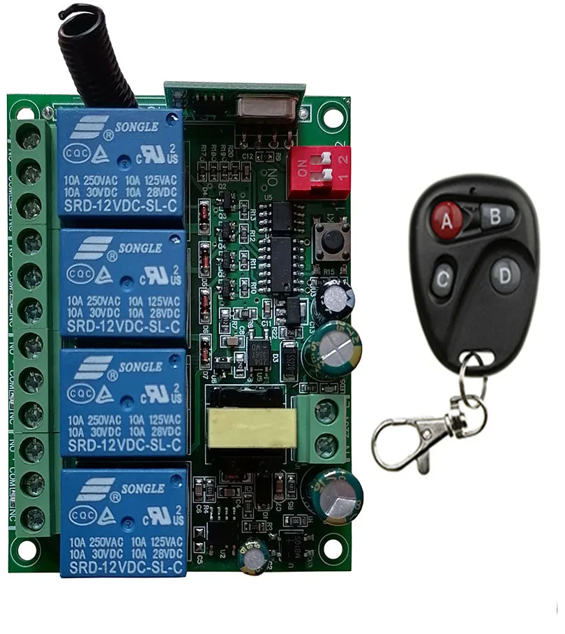 Компания проектирует и производит дорожный многофункциональный переключатель управления беспроводной связью для четырех релейных выходных сигналов, может сделать для управления оборудованием или электрическим переключателем или пройти, преобразования и различных специальных требований программы управления. Он в основном используется в электрических дверях, окнах, подъемном оборудовании, воротах, подъеме, промышленном контроле, освещении и электрическом управлении.