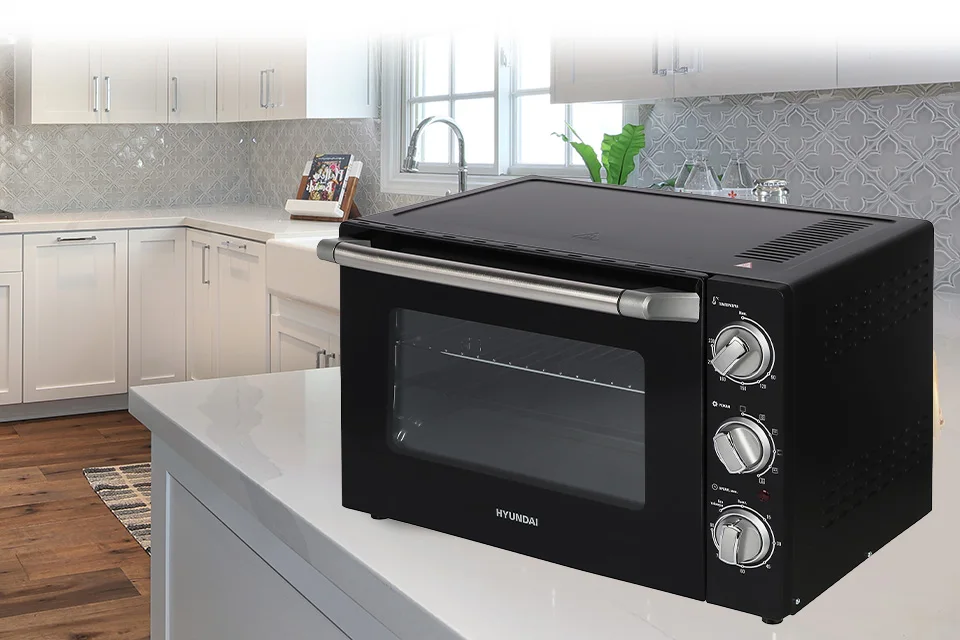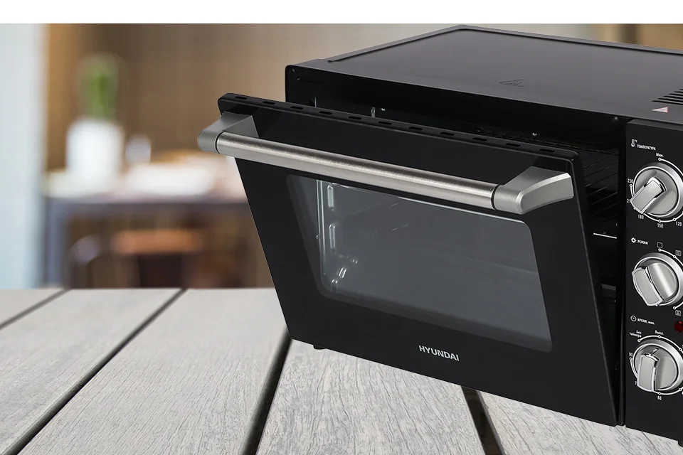 Ручка с защитой от нагревания повышает удобство и безопасность при работе с устройством. Порадуйте себя и свою семью вкусными блюдами и ароматной выпечкой с мини печью HYUNDAI.