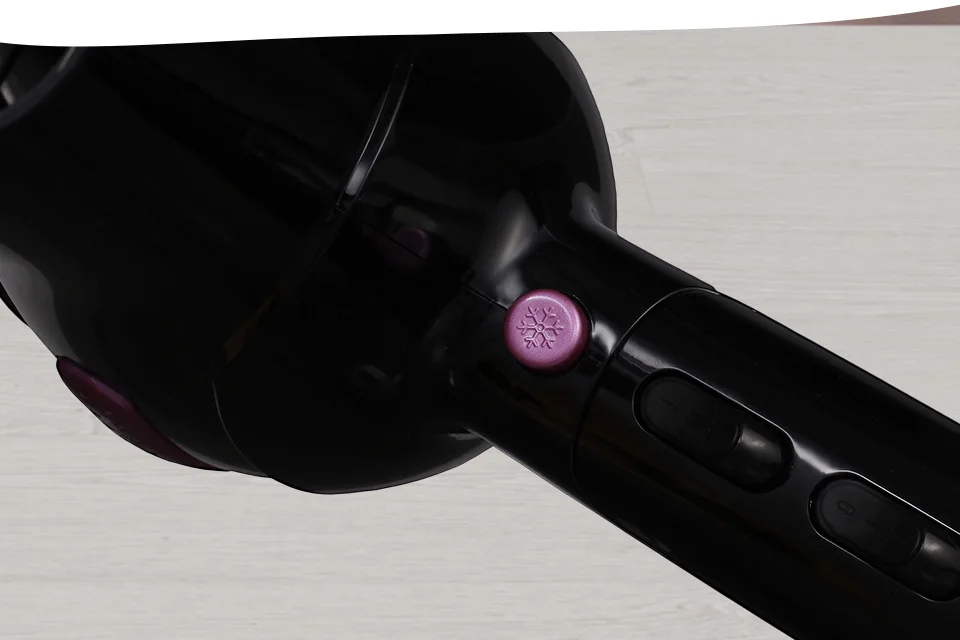 Также на чехол производитель разместил кнопку холодного воздуха, которая такая же, как и у других, выполнена в розовом цвете. Два режима переключения скорости расширяют функциональность этой модели. Кнопки переключаются плавно, без особых усилий.