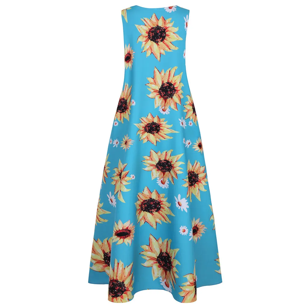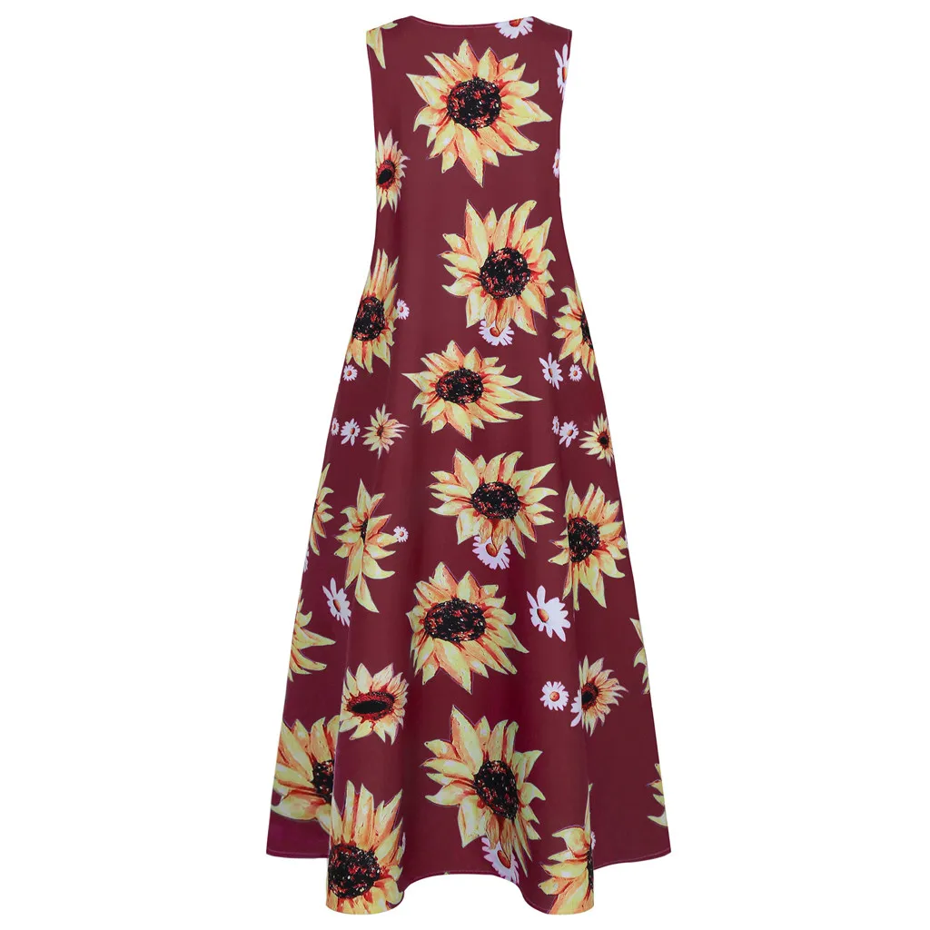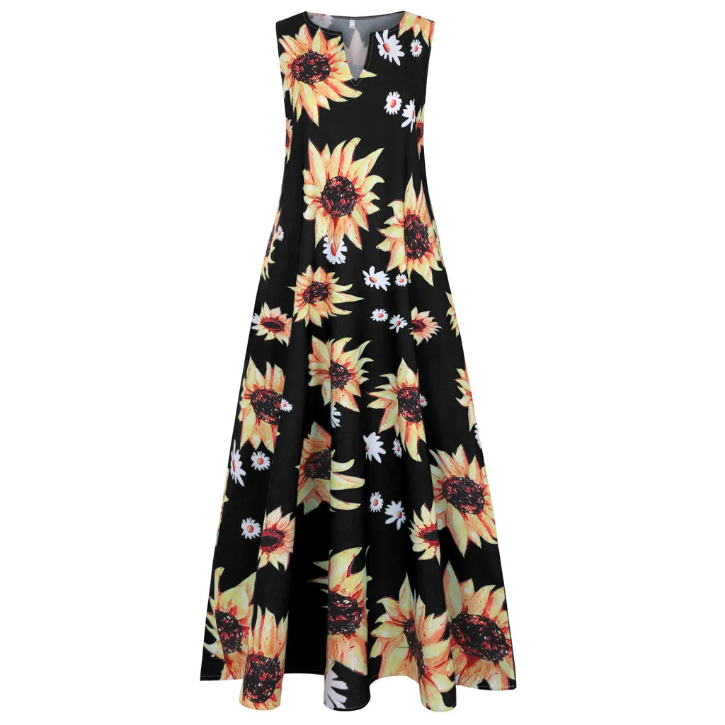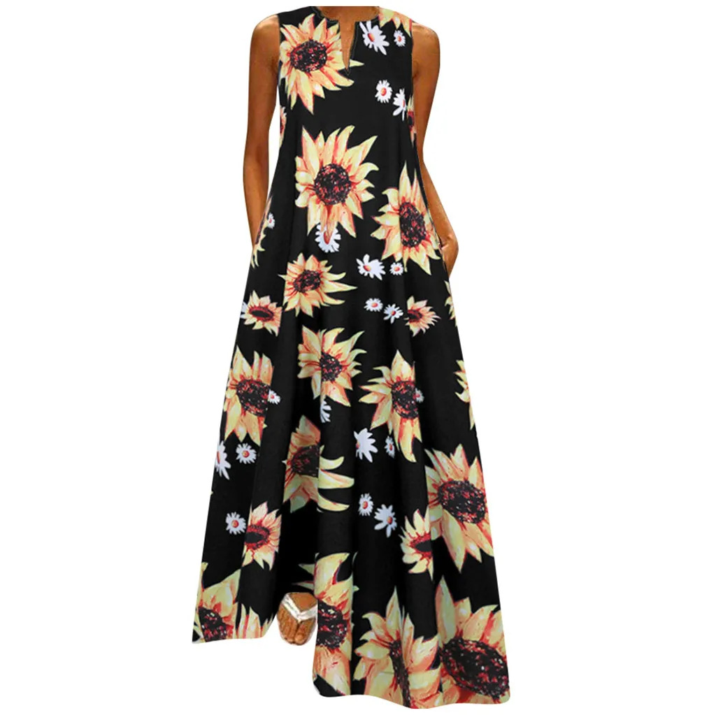 Женский Повседневный Сарафан в стиле бохо с принтом, повседневное богемное Платье макси без рукавов с V-образным вырезом, летние платья больших размеров