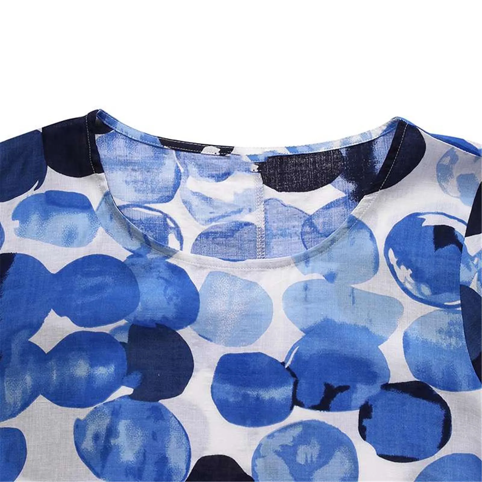 Летнее винтажное платье с карманами, женские платья с коротким рукавом и принтом, богемное Макси-Платье с круглым вырезом, летние платья в пляжном стиле