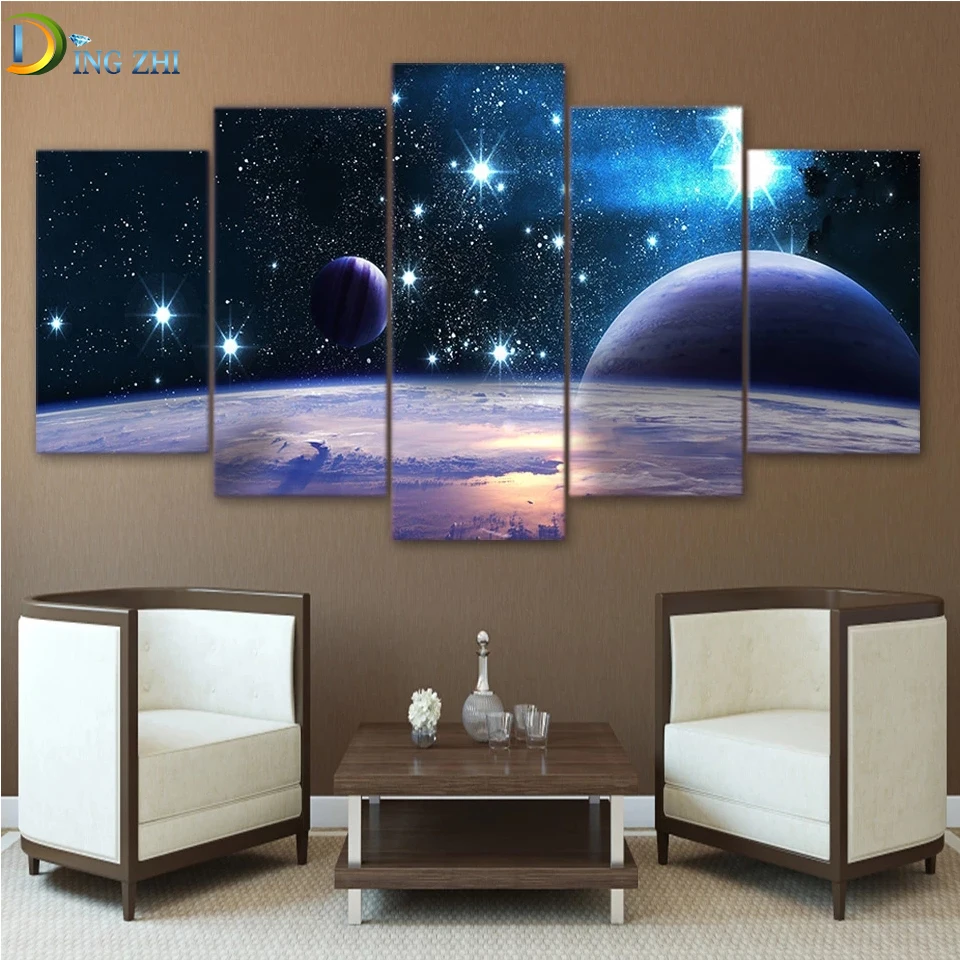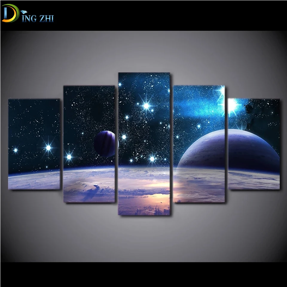 Алмазная вышивка Вселенная Галактика 5 панель Светоотражающая космическая планета Модульная картина Алмазная мозаика домашний декор настенная живопись