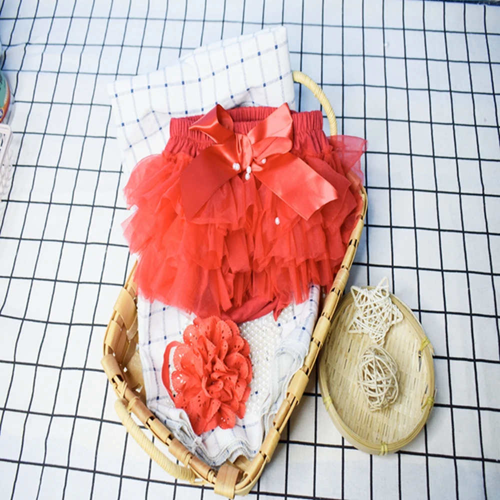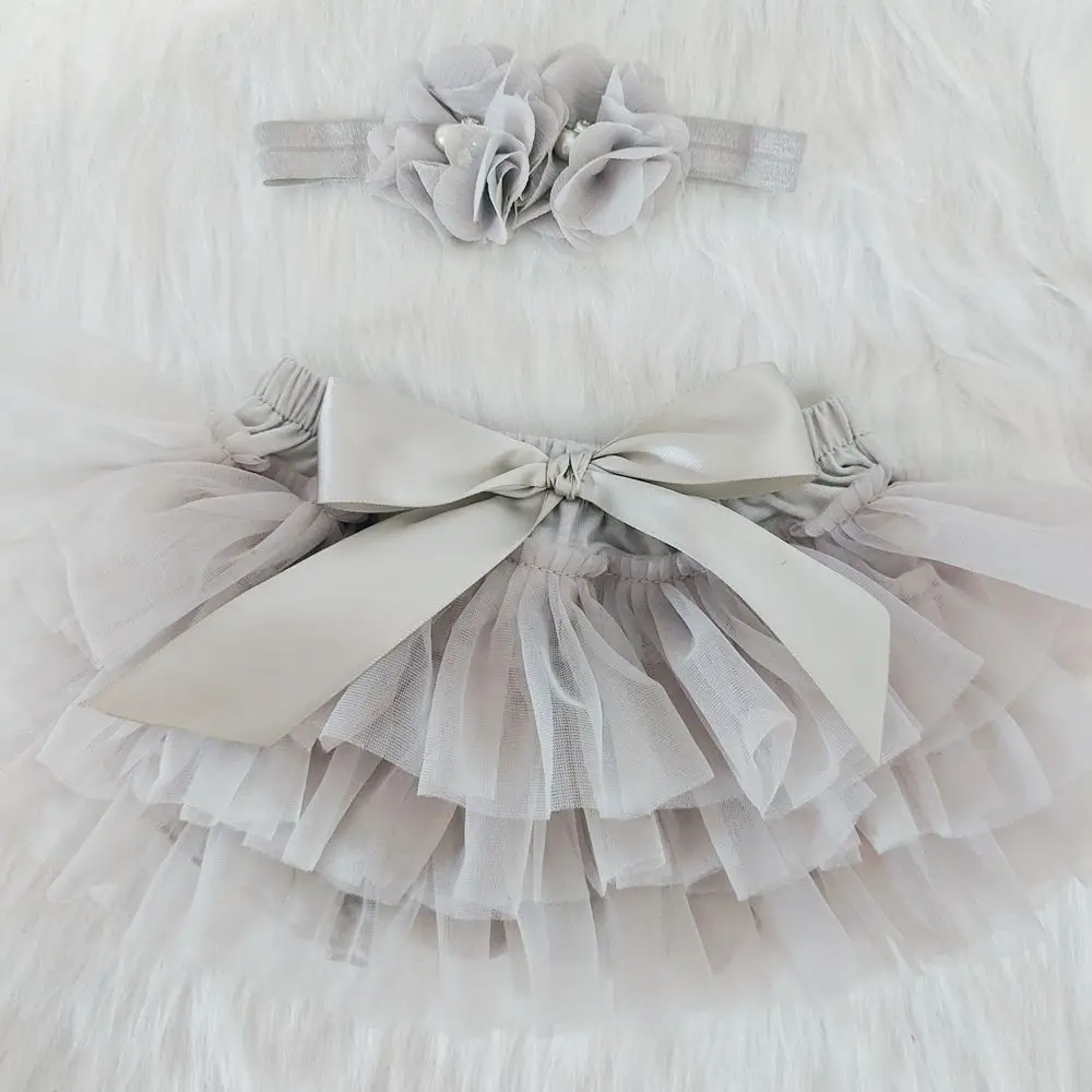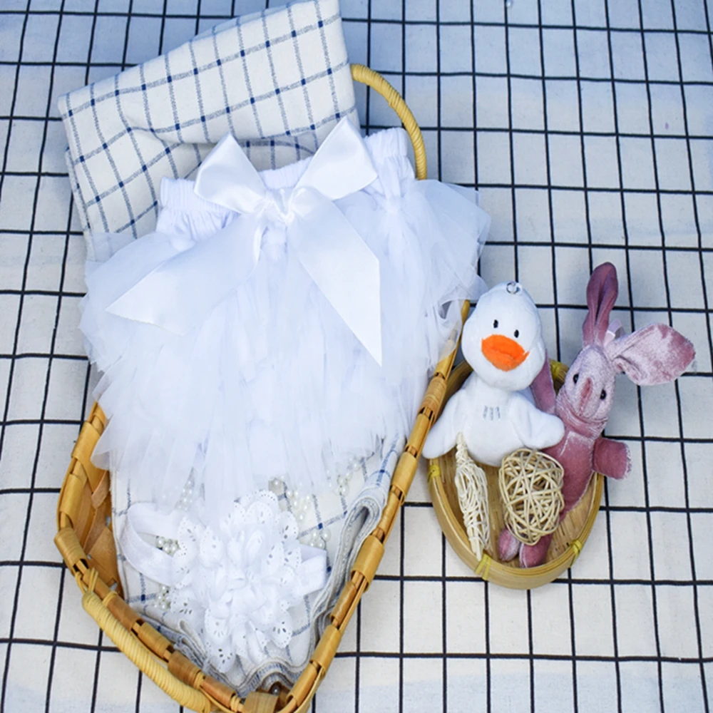 Тюлевые кружевные трусы, комплект для новорожденных из 2 предметов, повязка на голову с цветами, сетчатые шаровары, юбка-пачка для маленьких девочек