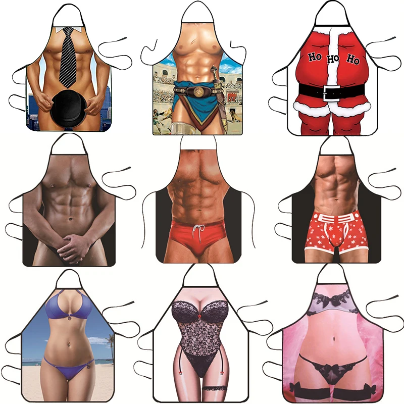 Забавный 3D кухонный фартук, сексуальные мужские фартуки с обнаженн...