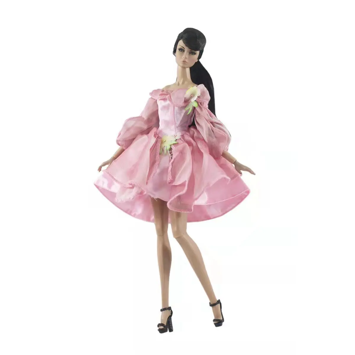 Модное розовое длинное платье с рукавами-фонариками и 11,5 "Кукольное платье для куклы Барби наряды вечерние платье 16 BJD мягкого плюша; Аксессуары для куклы игрушки для детей