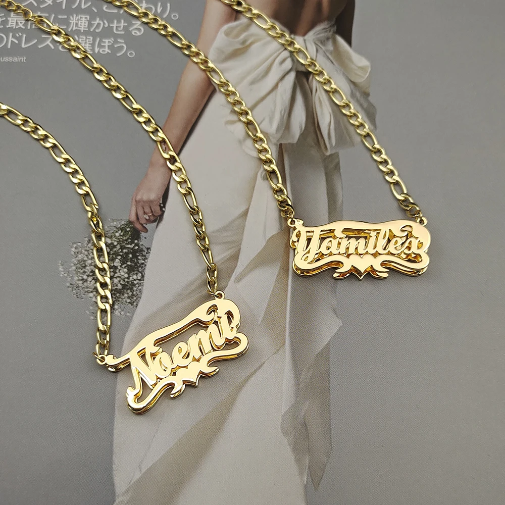Ожерелье Фигаро из нержавеющей стали с двойными надписями на заказ