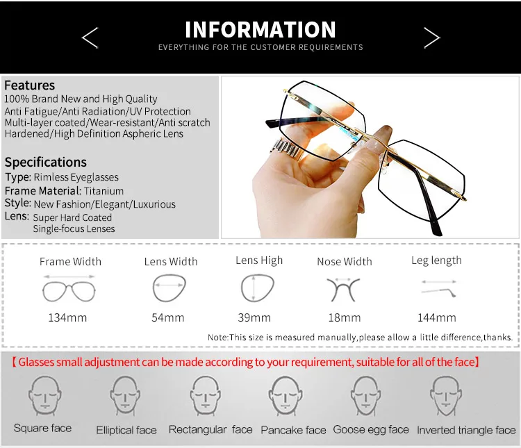 Изготовленный На Заказ титановый рецепт очки без оправы градусов ас...