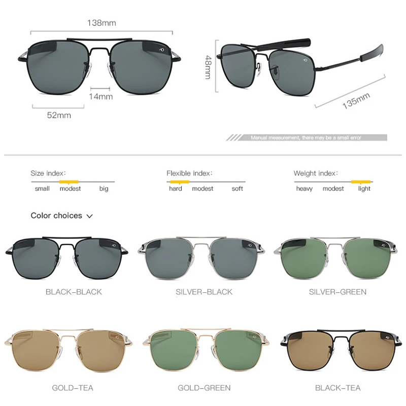 2021 Новый AO 8054 в стиле милитари женская мода Армия для пилот УФ-фильтр 52 мм с солнцезащитные очки американский бренд линзы оптические стеклянные очки, солнцезащитные очки с оправой