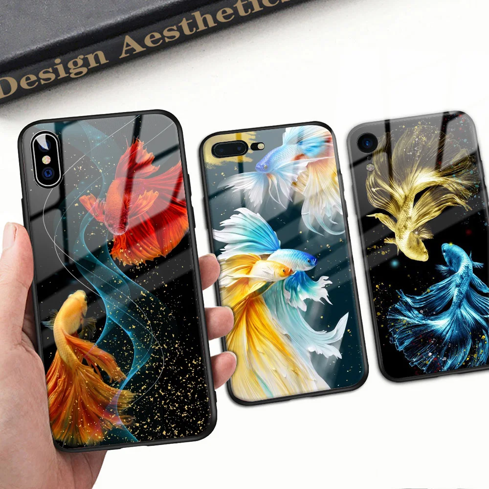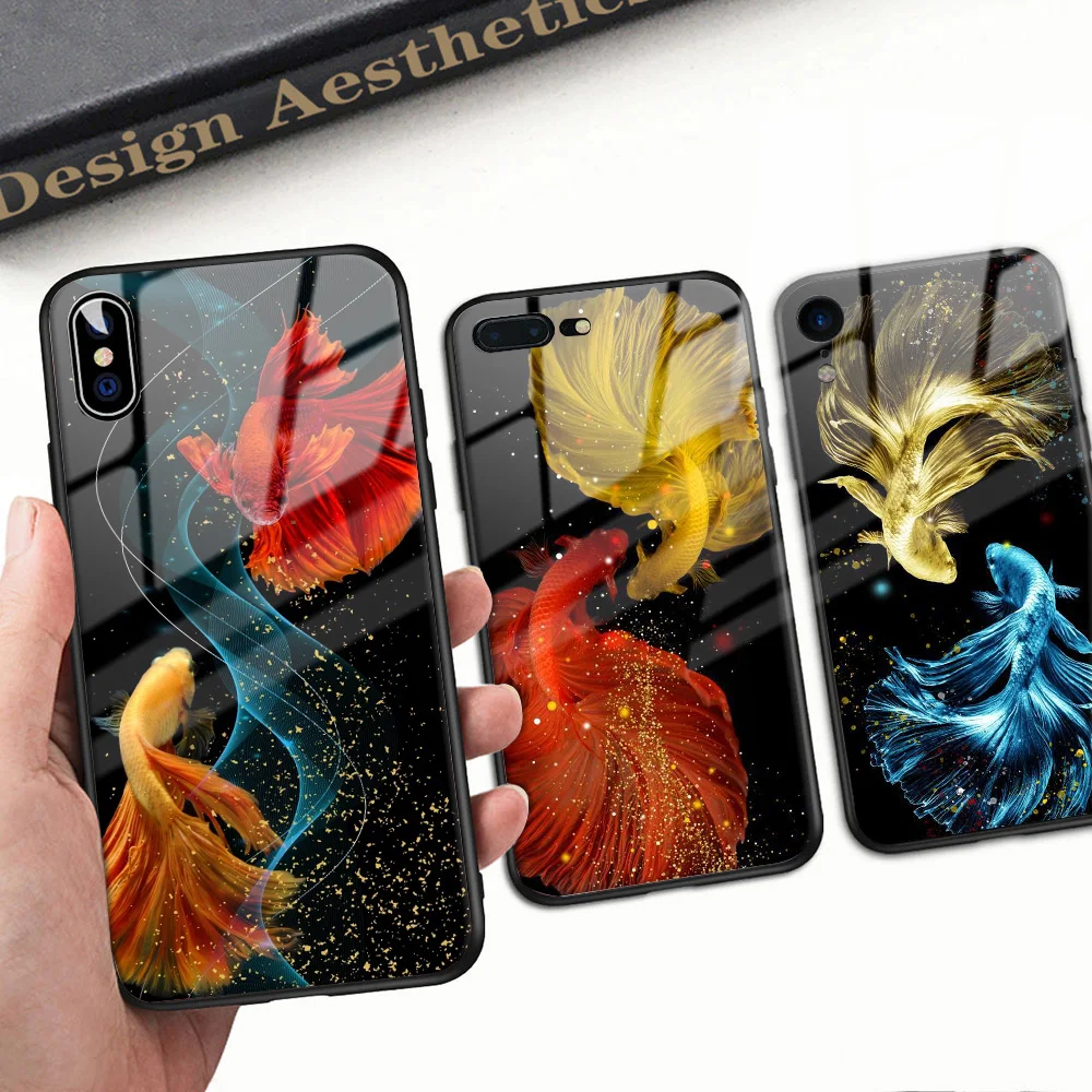 Чехол для телефона с золотой рыбкой для Iphone 7 8 Plus, чехол с за...