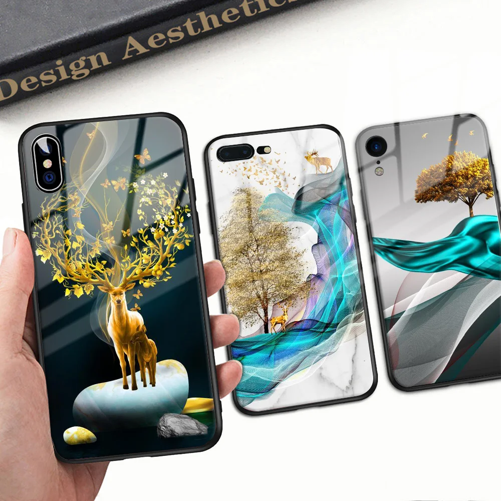 Чехол Milu Deers с рисунком для Iphone, чехол из закаленного стекла...