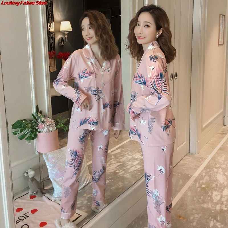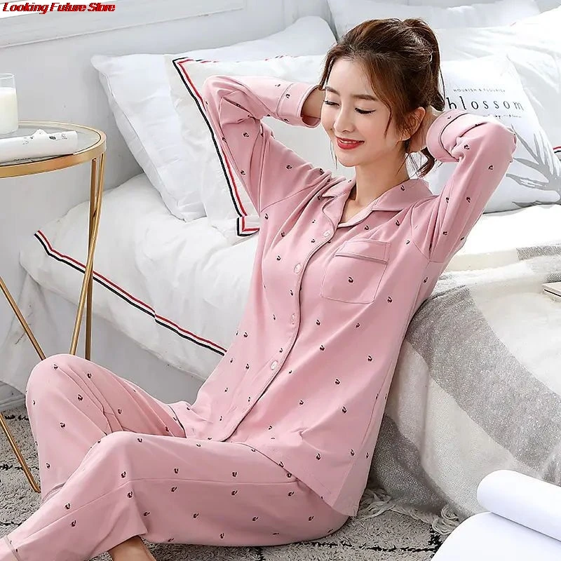 Пижама женская из 2022 хлопка на весну и осень, домашняя одежда с д...