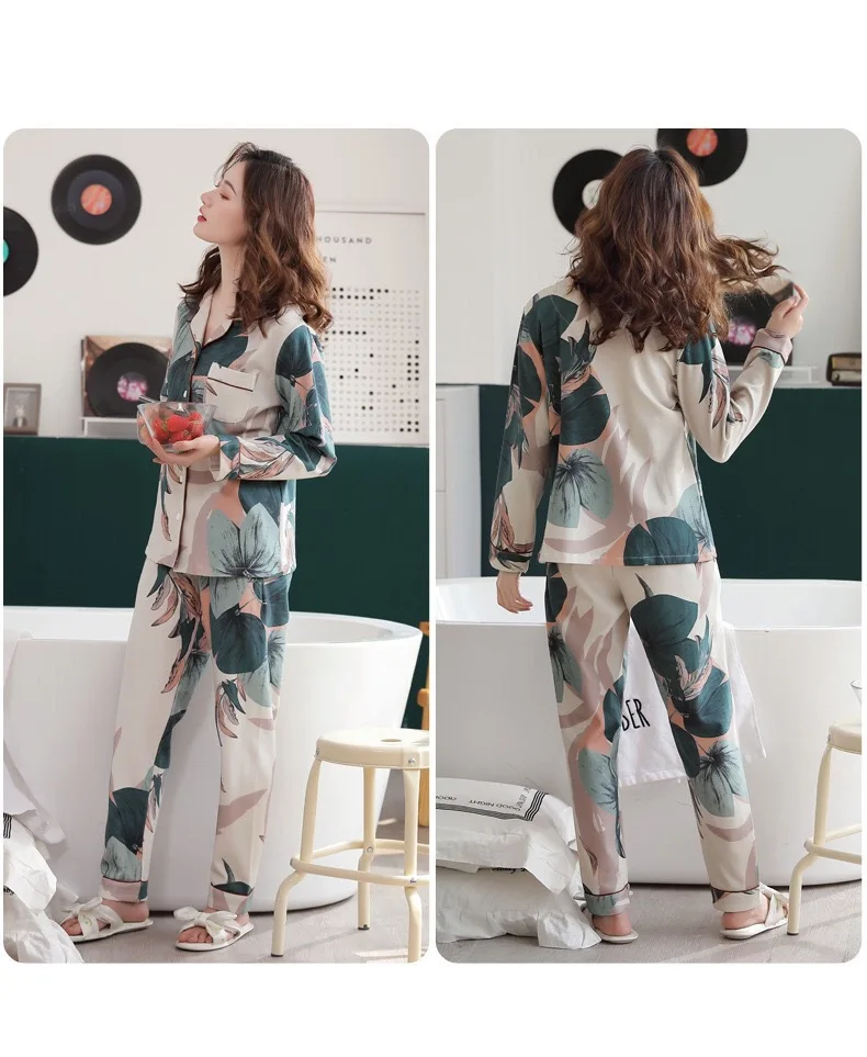 Женские летние брюки с длинным рукавом, костюм из двух предметов, Женская атласная Свободная Домашняя одежда с принтом, Повседневная Удобная Женская пижама, 2021