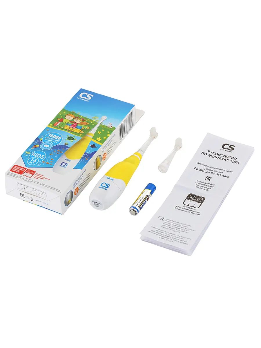 Электрическая звуковая зубная щетка CS Medica CS-561 Kids детская жёлтая