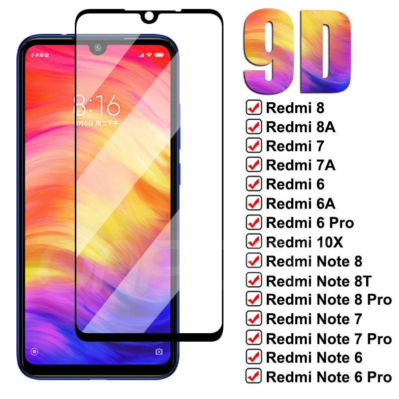 9D полное закаленное стекло для Xiaomi Redmi 8 8A 7 7A 6 6A K30 10X Защита для экрана Redmi Note 8T 8 7 6 Pro Защитная стеклянная пленка