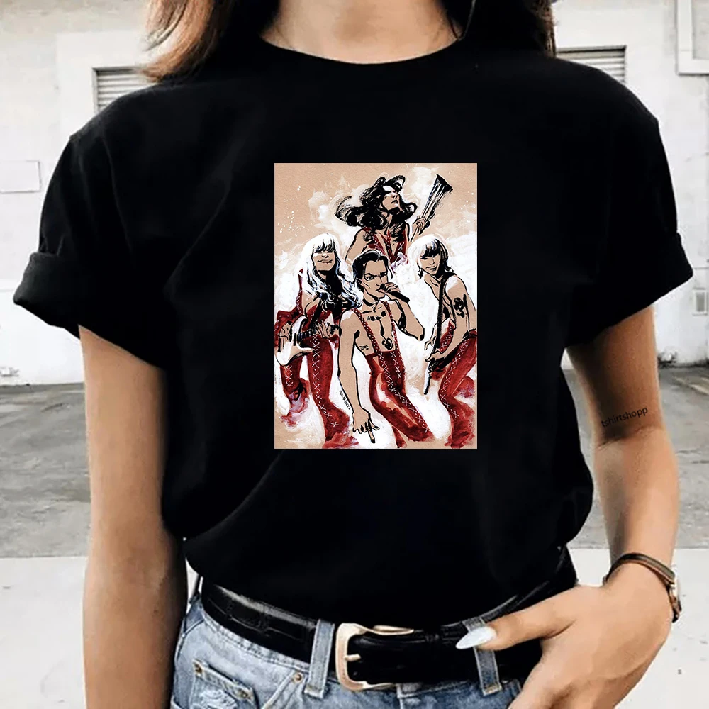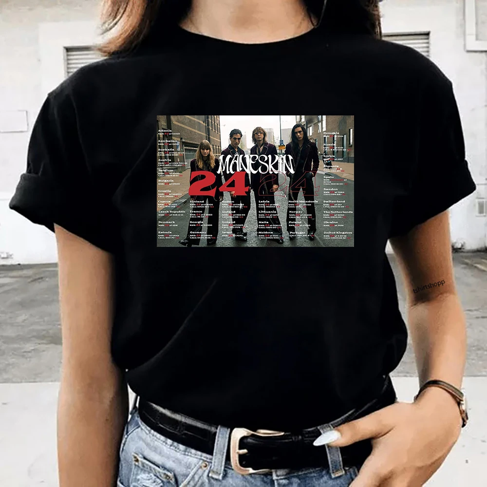 Футболка Maneskin женская с круглым вырезом, модный Повседневный хлопковый топ в стиле хип-хоп, кавайный винтажный Топ в стиле Харадзюку, черный цвет