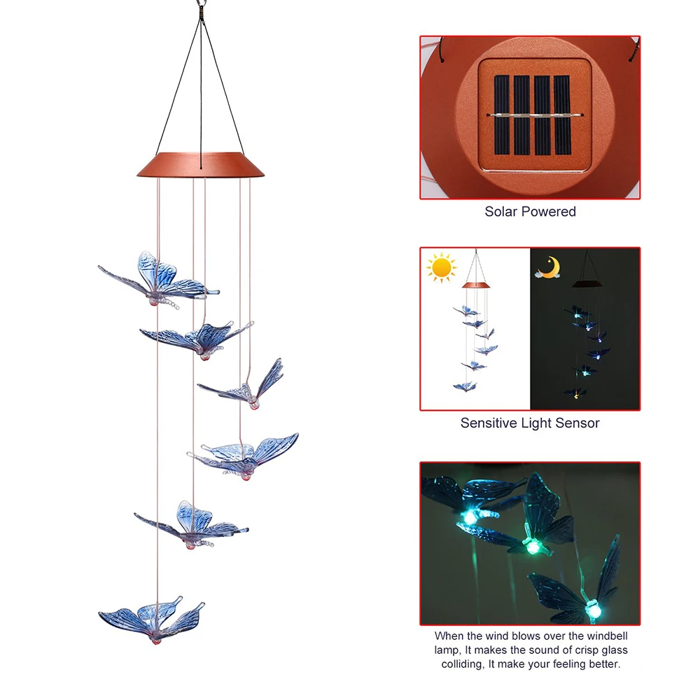 Светодиодные колокольчики на солнечной батарее, фонари-бабочки с из...
