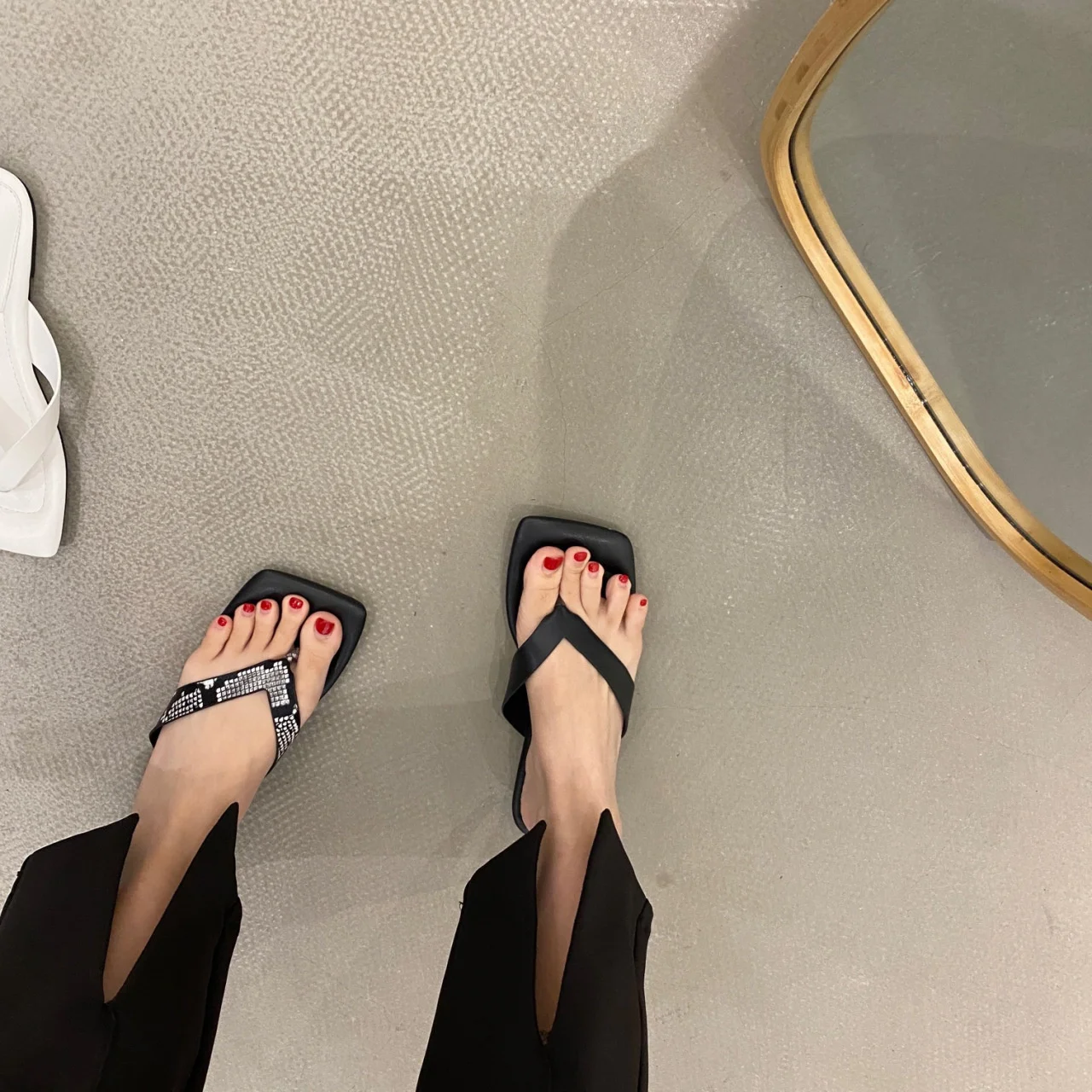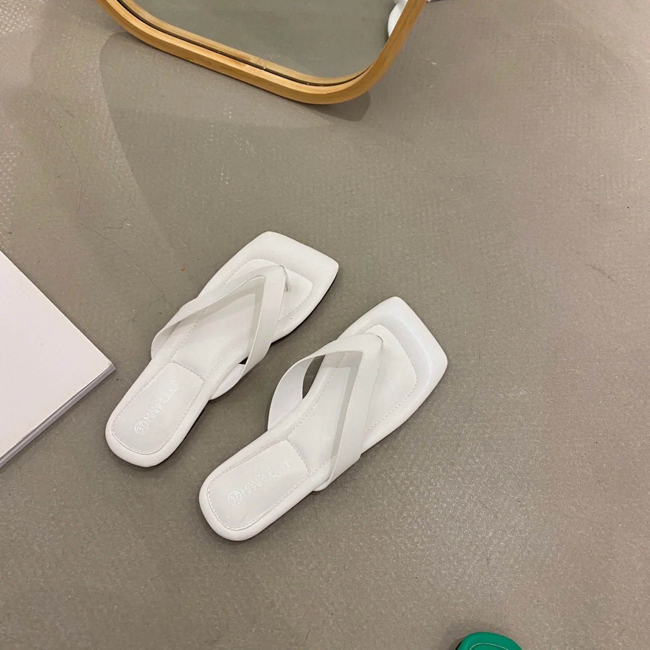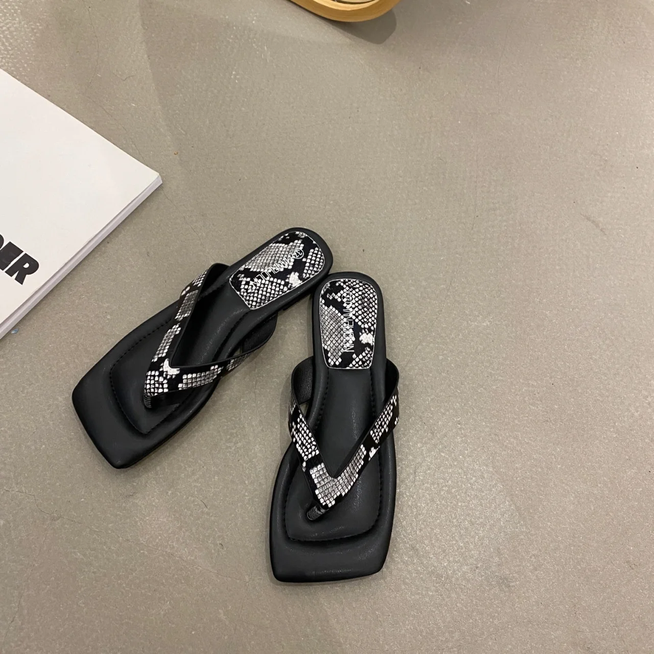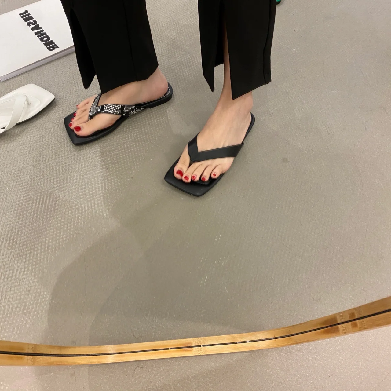 Женские модные летние шлепанцы, шлепанцы с квадратным носком и плоской подошвой, женские кожаные шлепанцы и сандалии с застежкой