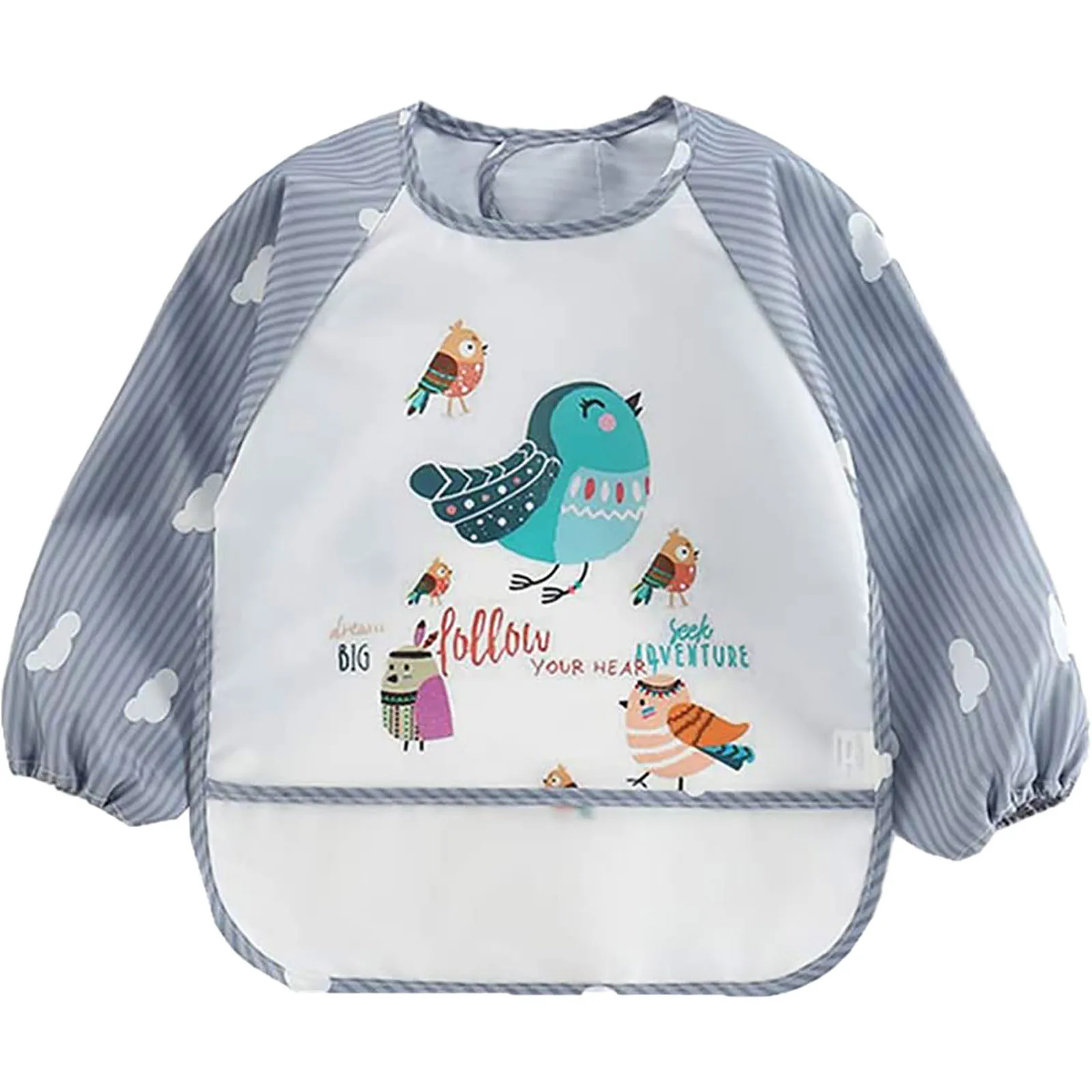 Милый детский нагрудник, модный топ с круглым вырезом и длинным рукавом с мультяшным принтом, водонепроницаемая хлопковая мягкая детская одежда, одежда для детей # J