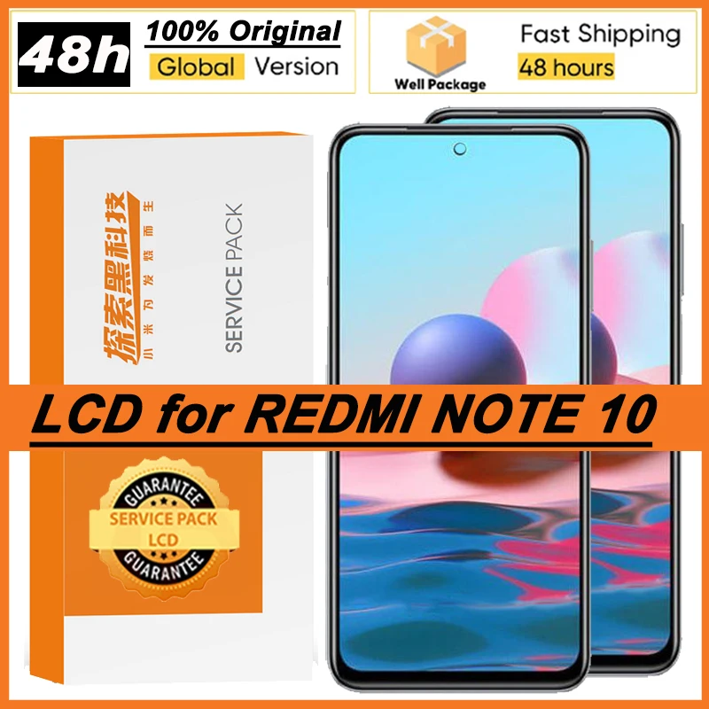 Дисплей для Xiaomi Redmi Note 10, M2101K7AI, M2101K7AG, 100% дюйма, сенсорный ЖК-экран, дигитайзер в сборе, запчасти для ремонта