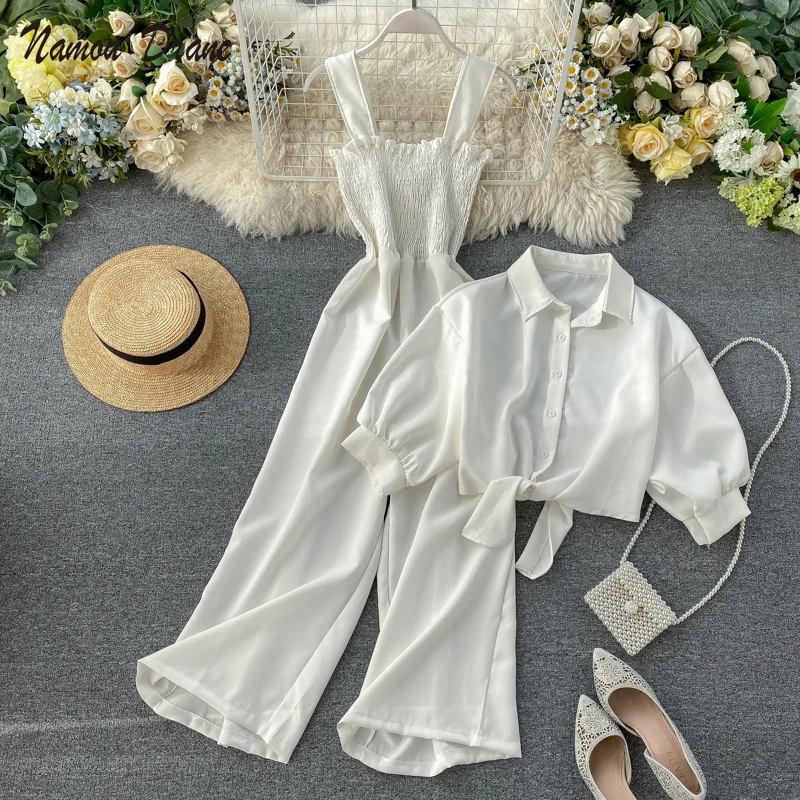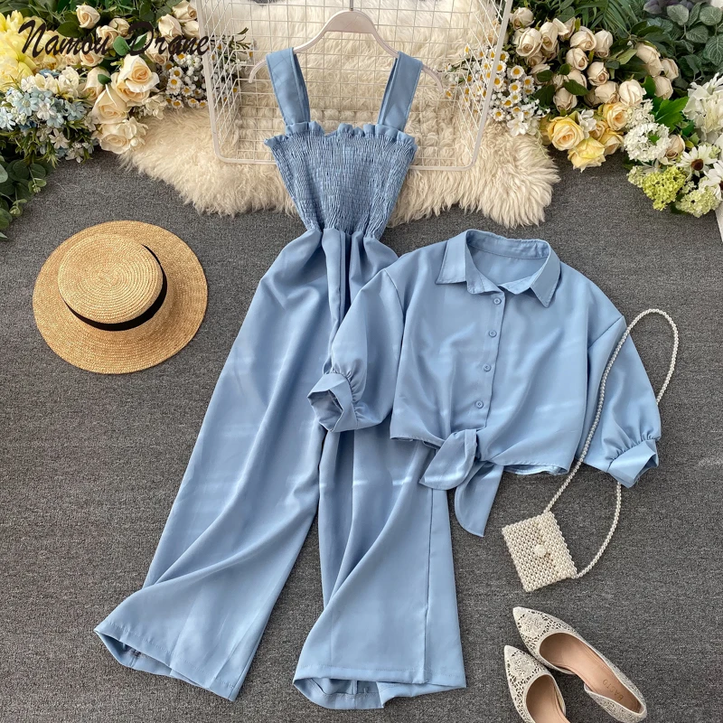 2021 летний комплект из двух предметов, Женская свободная короткая Солнцезащитная куртка + подвешенный комбинезон, женская одежда, повседневный праздничный костюм