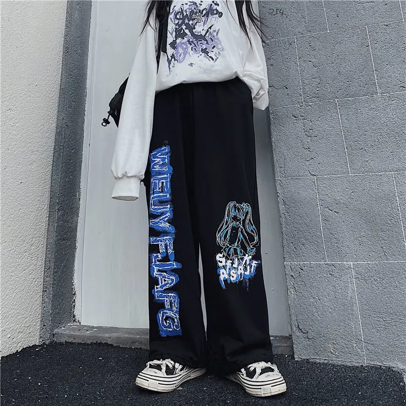 Брюки женские, в стиле Харадзюку, с японским рисунком, в стиле хип-...