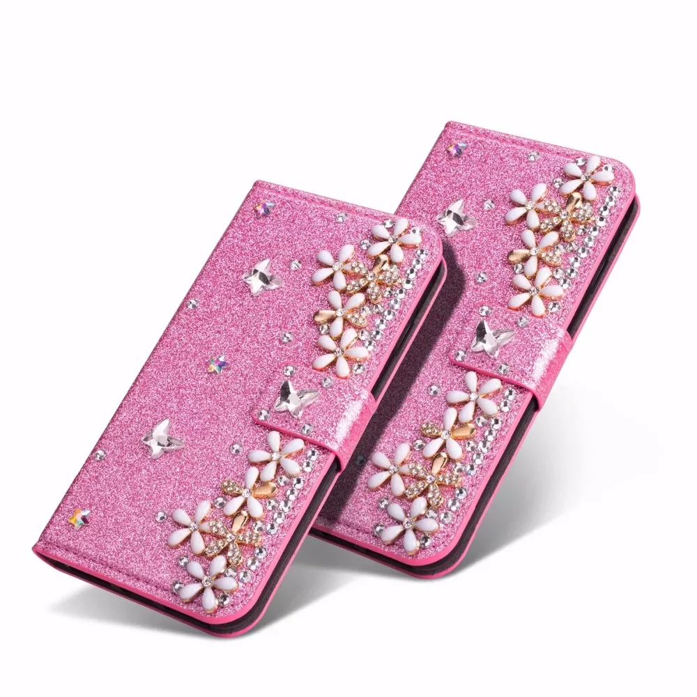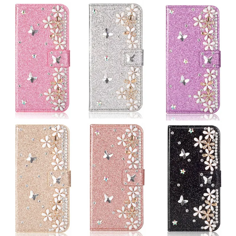 Блестящий кожаный чехол-книжка с отделением для карт и цветочным рисунком из страз для XiaoMi Redmi 9T K40 K40Pro Mi 11 Ultra POCO F3 M3 Coque