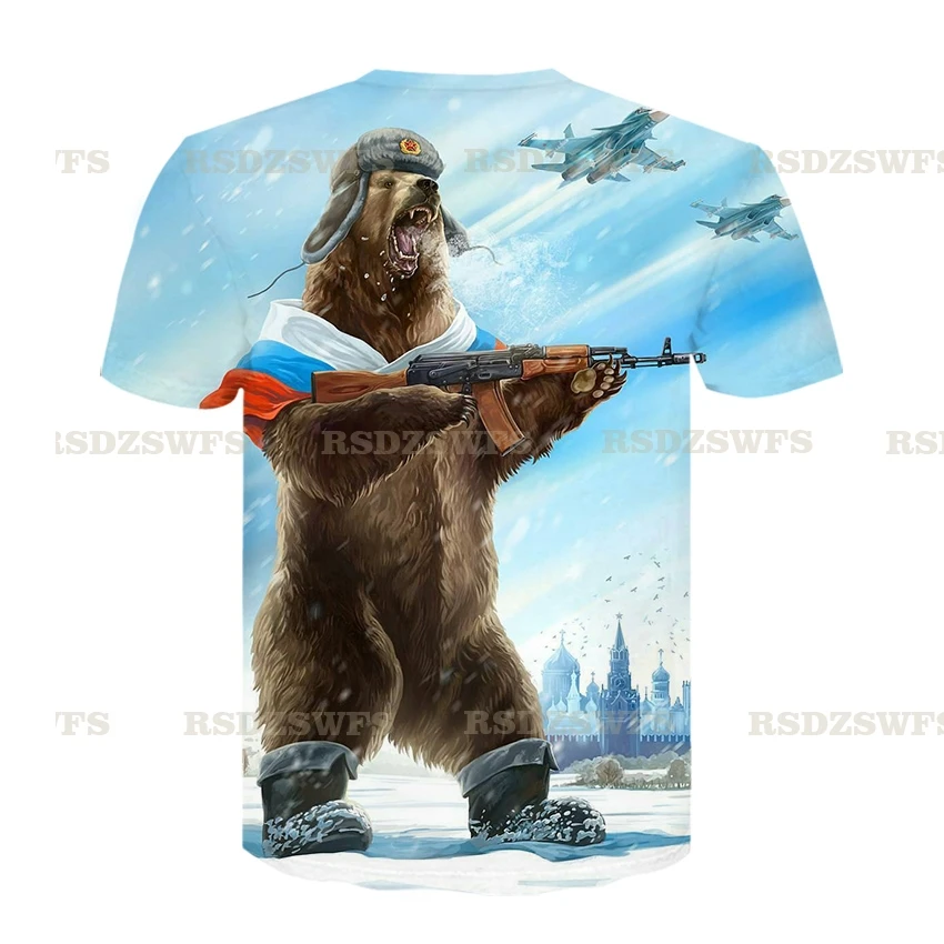 Мужская одежда 2021, брендовая футболка в русском стиле, рубашки в виде медведя, женская одежда в стиле милитари, футболки с рисунком оружия, мужские футболки с забавным 3D-принтом