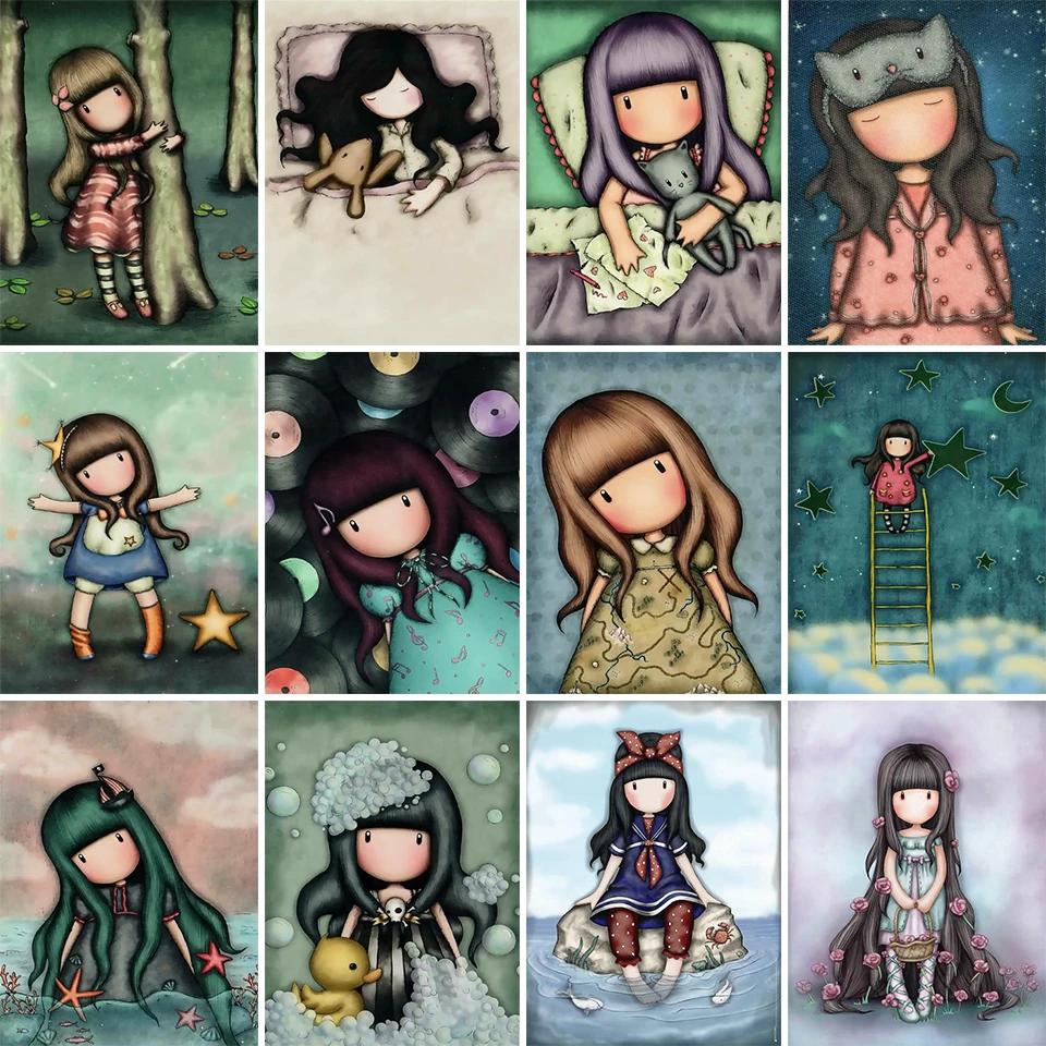 Алмазная 5D картина с мультяшным изображением девочки, полноразмерн...