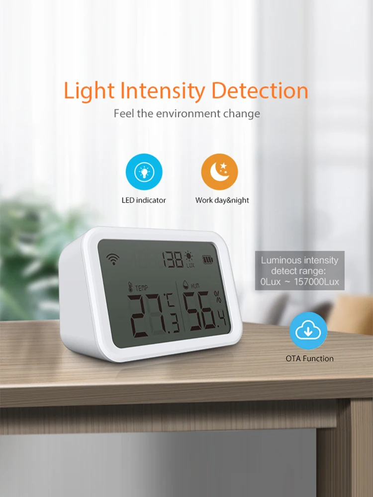 Датчик температуры и влажности Tuya, Wi-Fi, интенсивность света, ав...