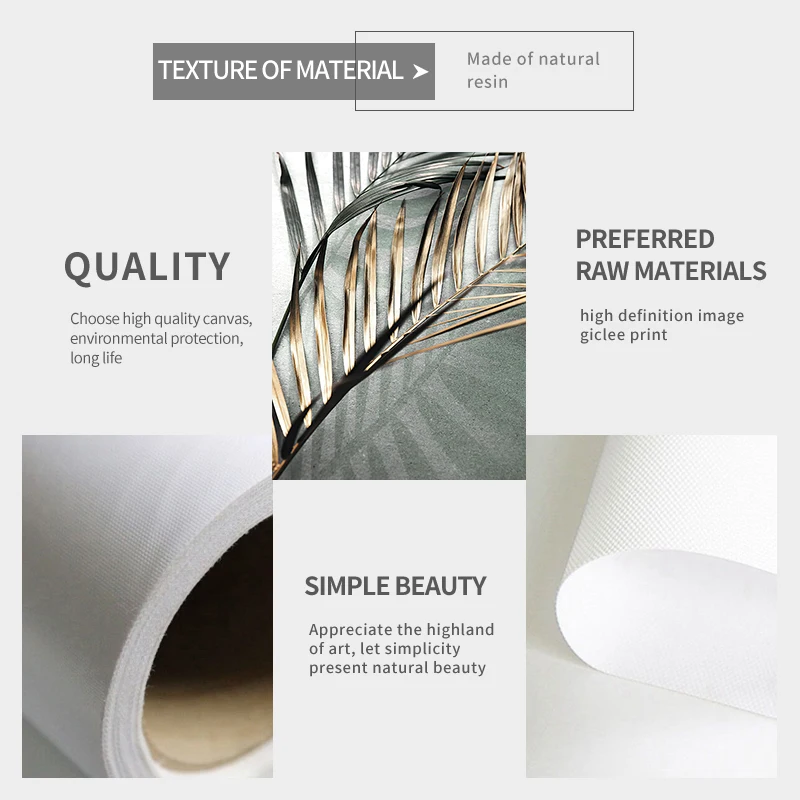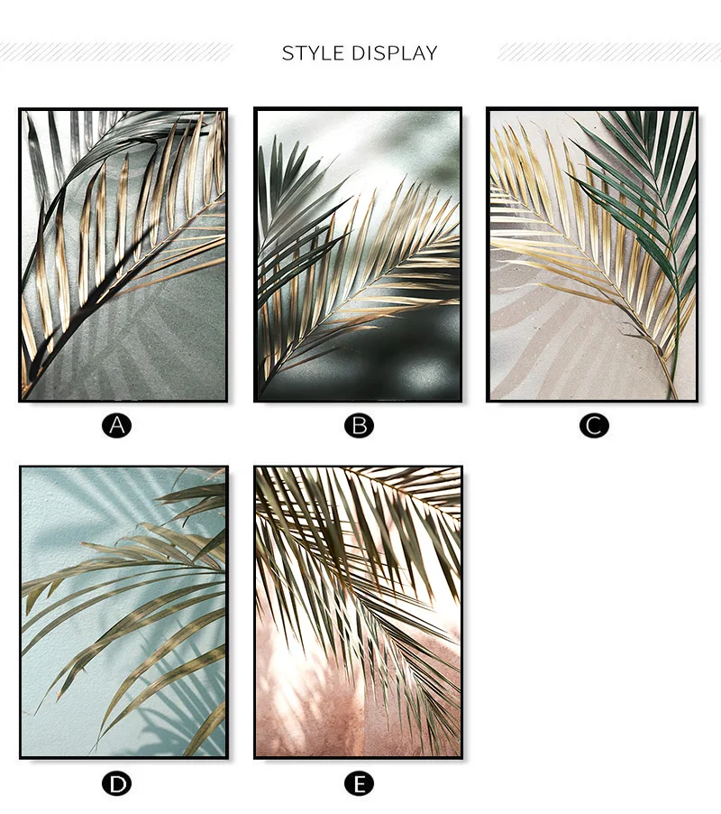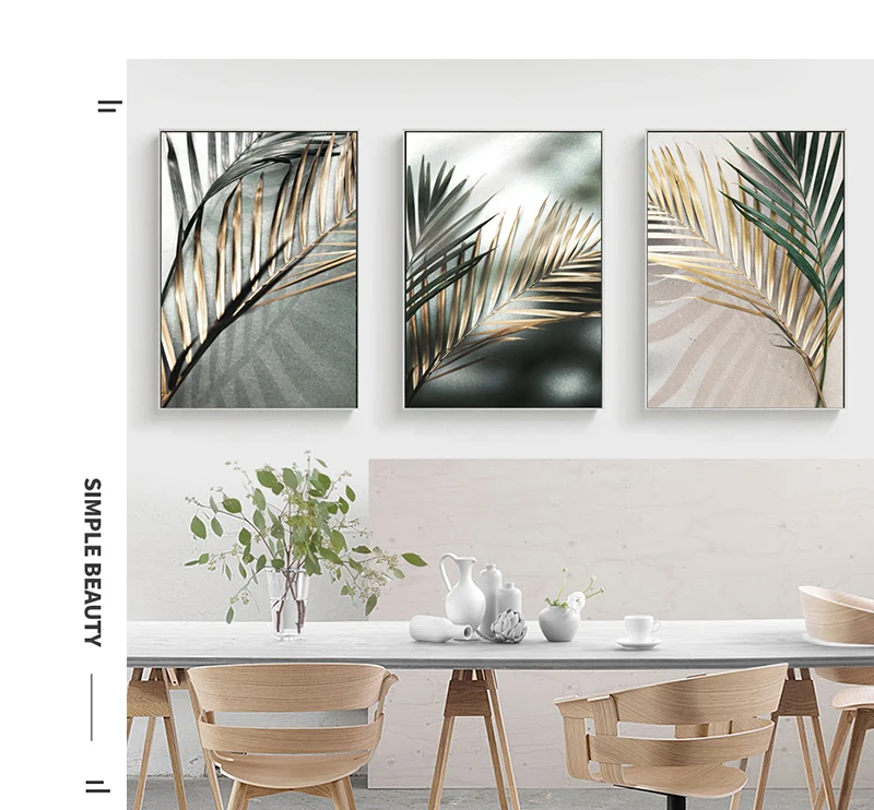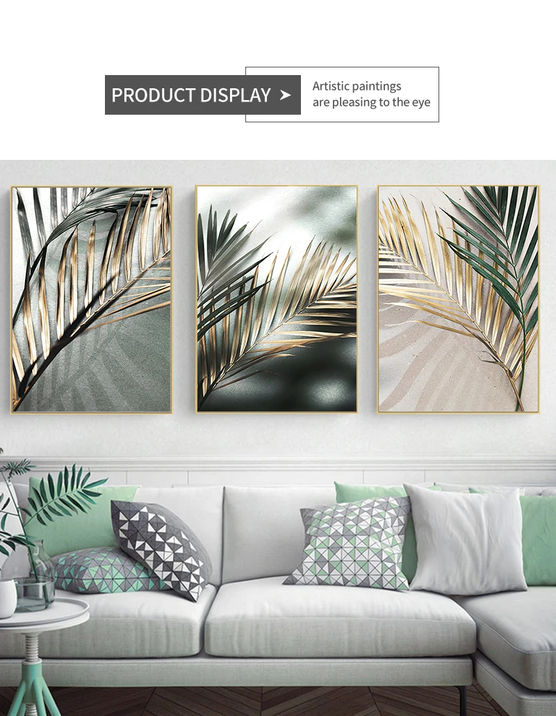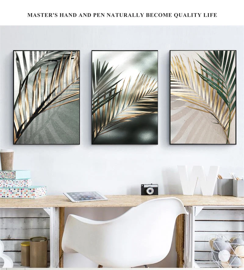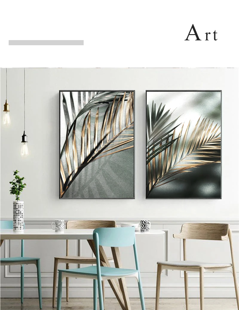 Nordic Золотой пальмовых листьев растений холст живописи ботаническ...
