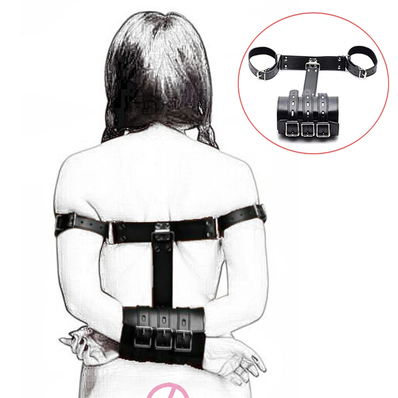 БДСМ бандаж на ногибандаж для рук, за спиной прямая куртка, SM кожа Armbinder удерживающий раб запираемый перчатки с плечевыми лямками