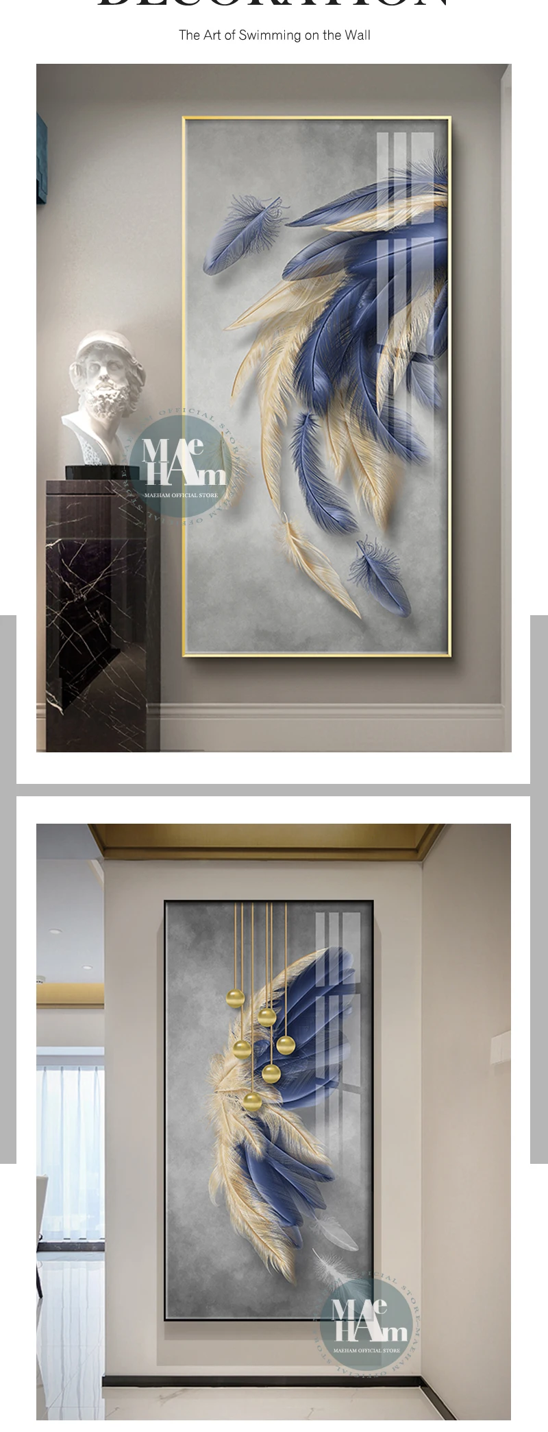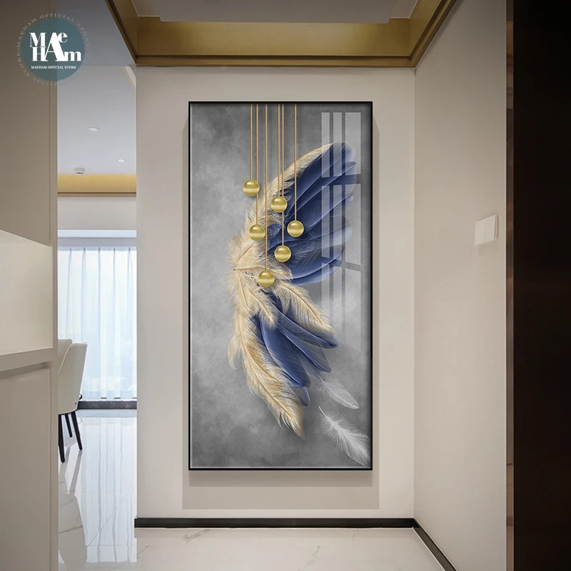 Декоративные настенные постеры в скандинавском стиле с голубыми золотыми перьями, художественные рисунки на холсте, печатные настенные картины для гостиной, домашний декор