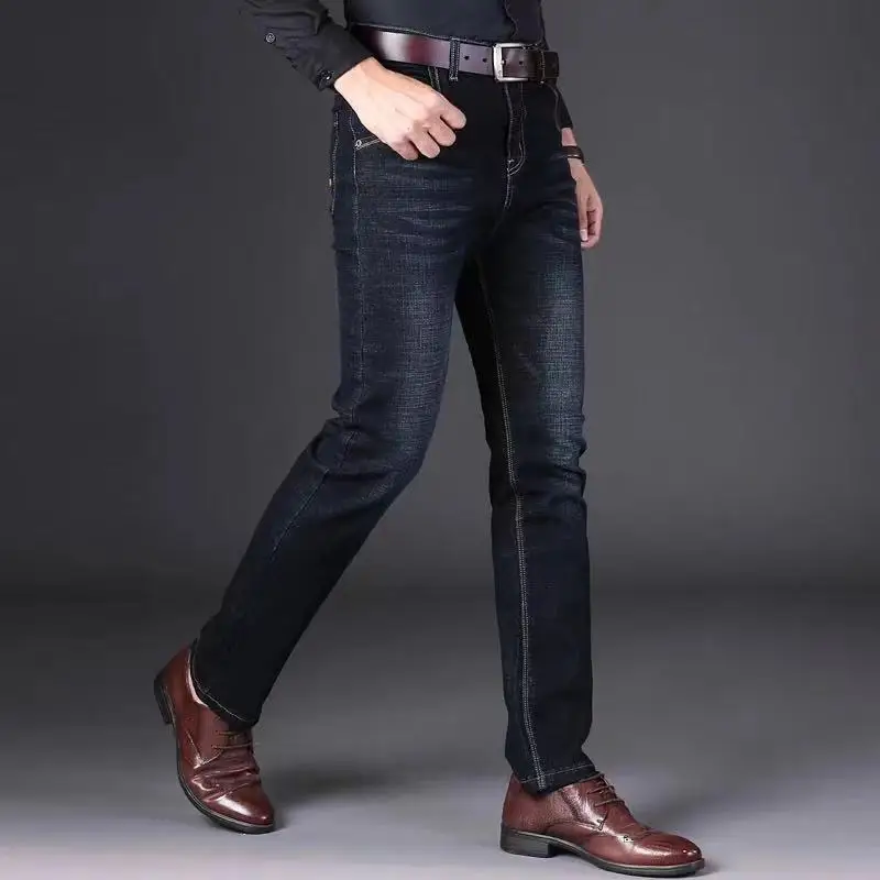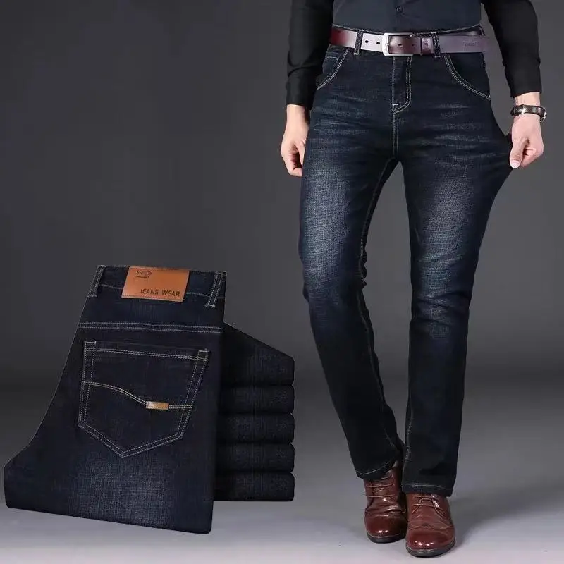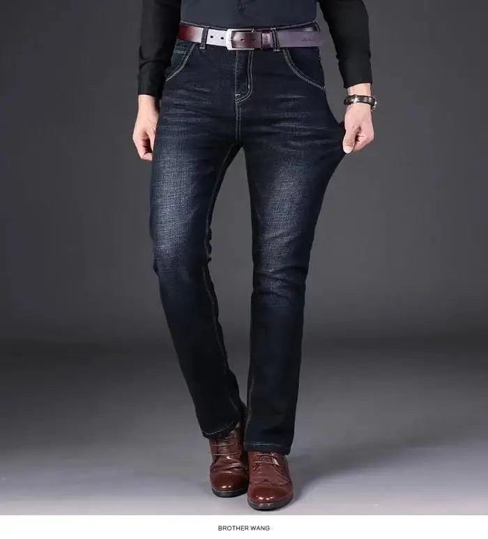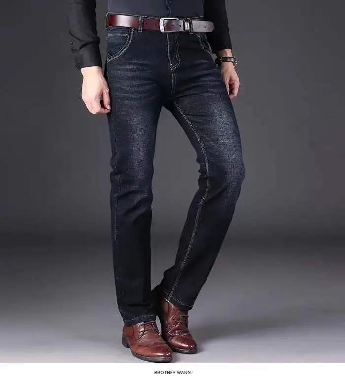 Мужские прямые джинсы, синие, черные повседневные Стрейчевые брюки ...