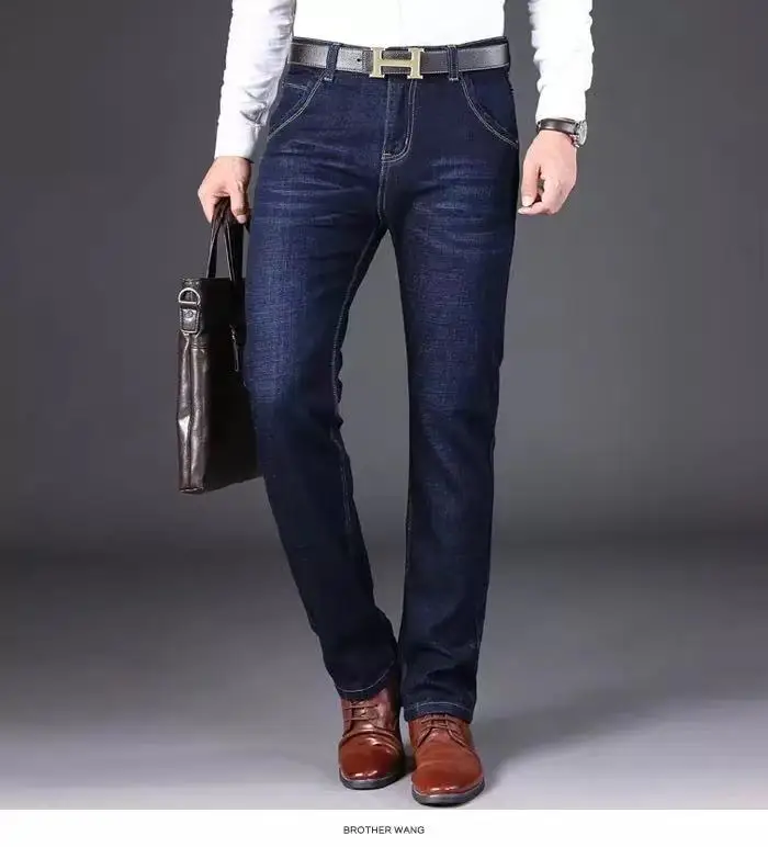 Джинсы мужские классические стрейчевые, классические брюки из деним...