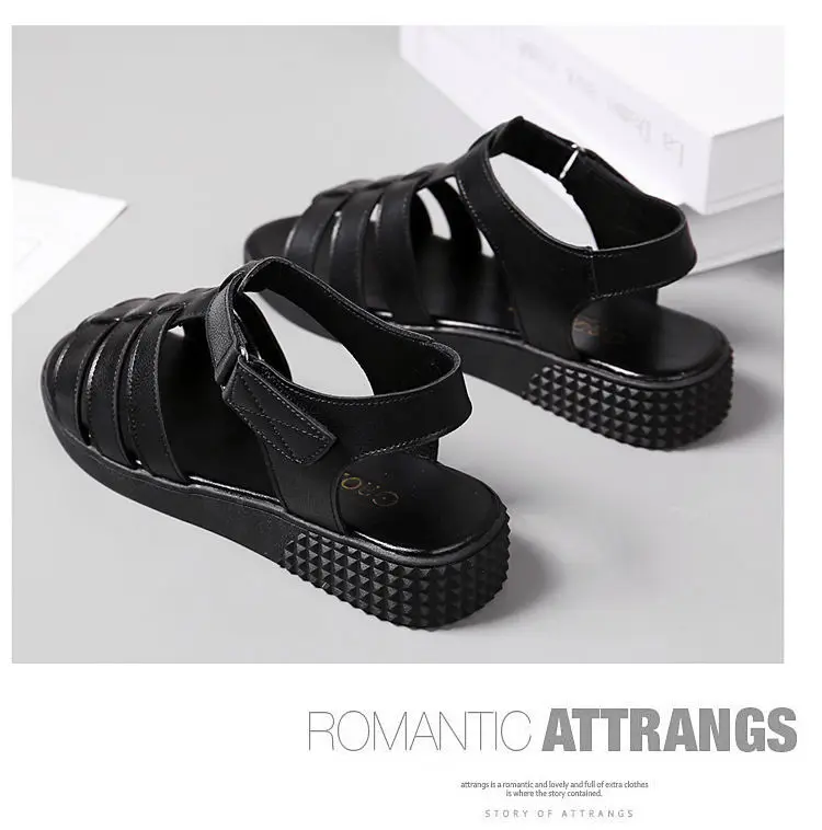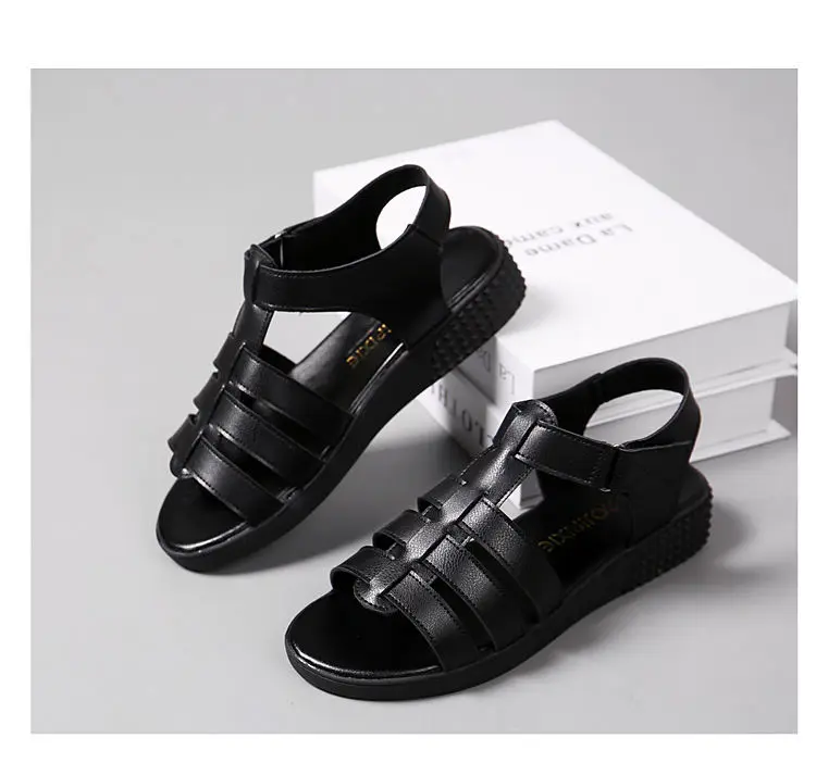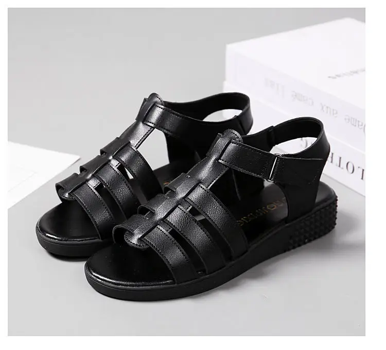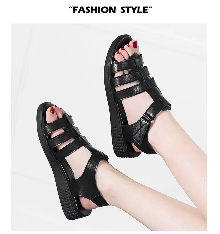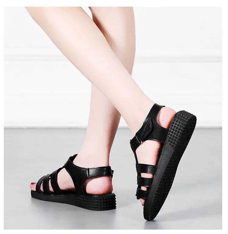 OUKAHUI размера плюс 34-44 и выше, обувь на низком каблуке из натуральной кожи в римском стиле; Сандалии-гладиаторы на шнуровке на плоской подошве для женщин; Летняя женская обувь с открытым носком; Черные сандалии