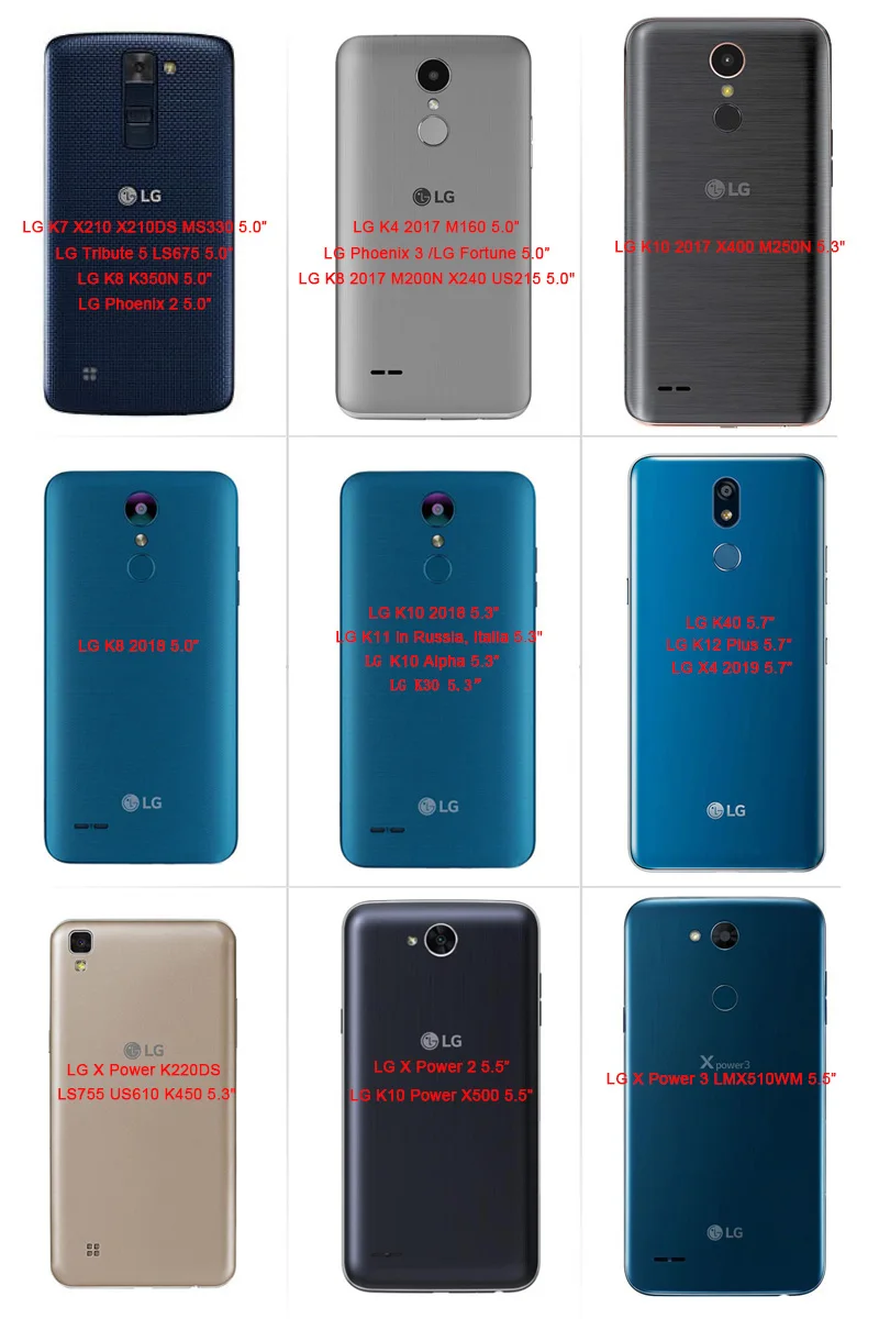 Для LG V10 H960 H961N H962 H968 VS990 5,7 "для LG V20 H990N H990DS H910 H918 LS997 US996 VS995 H990T 5,7" для LG V30 H930 H930DS H933 H931 H932 VS996 US998 LS998U 6,0 "для LG V40 ThinQ v405QA7 V405UA V405TAB V405UA0 6,4" для LG V50 ThinQ LM-V500N LM-V500EM LM-V500XM LM-V450PM 6,4" Для LG K7 X210 X210DS MS330(LG Tribute 5 LS675) 5,0 "для LG K8 K350N(LG Phoenix 2) 5,0" для LG K4 2017 M160(LG Phoenix 3 /LG Fortune) 5,0 "для LG K8 2017 M200N X240 US215 5,0" для LG K10 2017 X400 M250N 5,3 "для LG K8 2018 5,0" для LG K10 2018 (LG K11 в России, Италия) 5,3 "для LG K10 Power X500/X Charge M320G 5,5" для LG K40/LG K12 Plus 5,7 "для LG X Power K220DS K220 LS755 US610 K450 5,3" для LG X Power 2 5,5 "для LG X Power 3 LMX510WM 5,5"