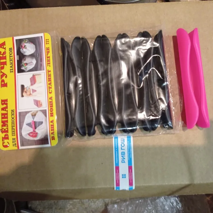Набор ручек пришёл за десять дней. Долго на них смотрела, думала заказывать или нет, читала отзывы. Думаю что будет удобно носить пакеты. У меня рука маленькая, мне нормально, как для мужской руки -не знаю, ручка не большая, длина-10см, под пальцы-8см.