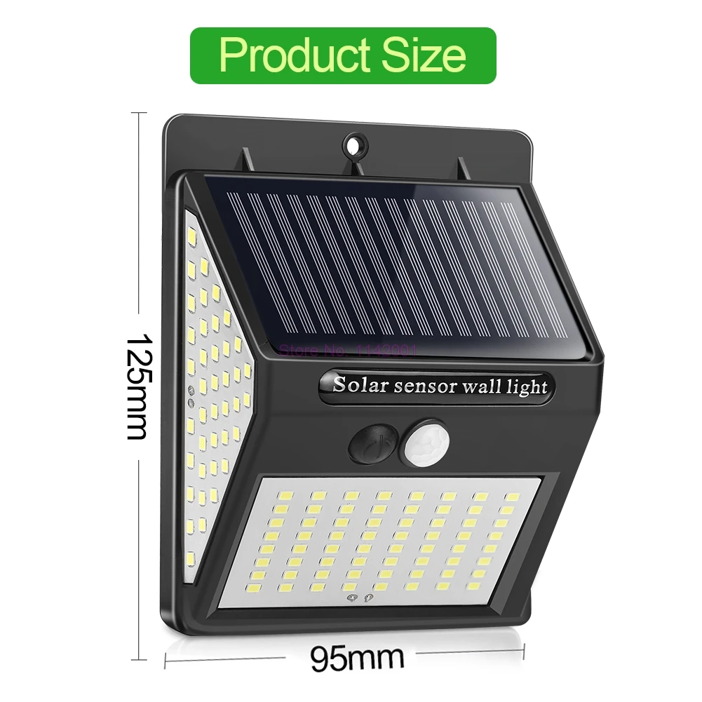 Вход Напряжение: 5,5 VОбщая мощность: 5 ВтТип лампы: светодиодныйСветильник источник: солнечный светильникСветодиодныйКоличество: 100 шт./144 шт. светодиодовСветильник Цвет: белыйМощность Источник: 1*3,7 V 1200mAH литиевая батареяВремя зарядки: 8 часовВремя работы: более 8 часовРежимы управления: LIght/PIRЗадержка на высокий светильник: 20-25sУгол датчика: 120 °Расстояние датчика: 3-5 мСтепень защиты: IP65Материал: АБС-пластикЦвет изделия: черныйРазмер лампы: 125*88*47 мм/4,9*3,5*1,9 дюймов (длина * ширина * высота)Вес товара: 154 г/5,4 унцийПосылка Размер: 130*100*55 мм/5,1*3,9 * 2.2in (Длина * Ширина * высота)Посылка Вес: 179 г/6,3 унций