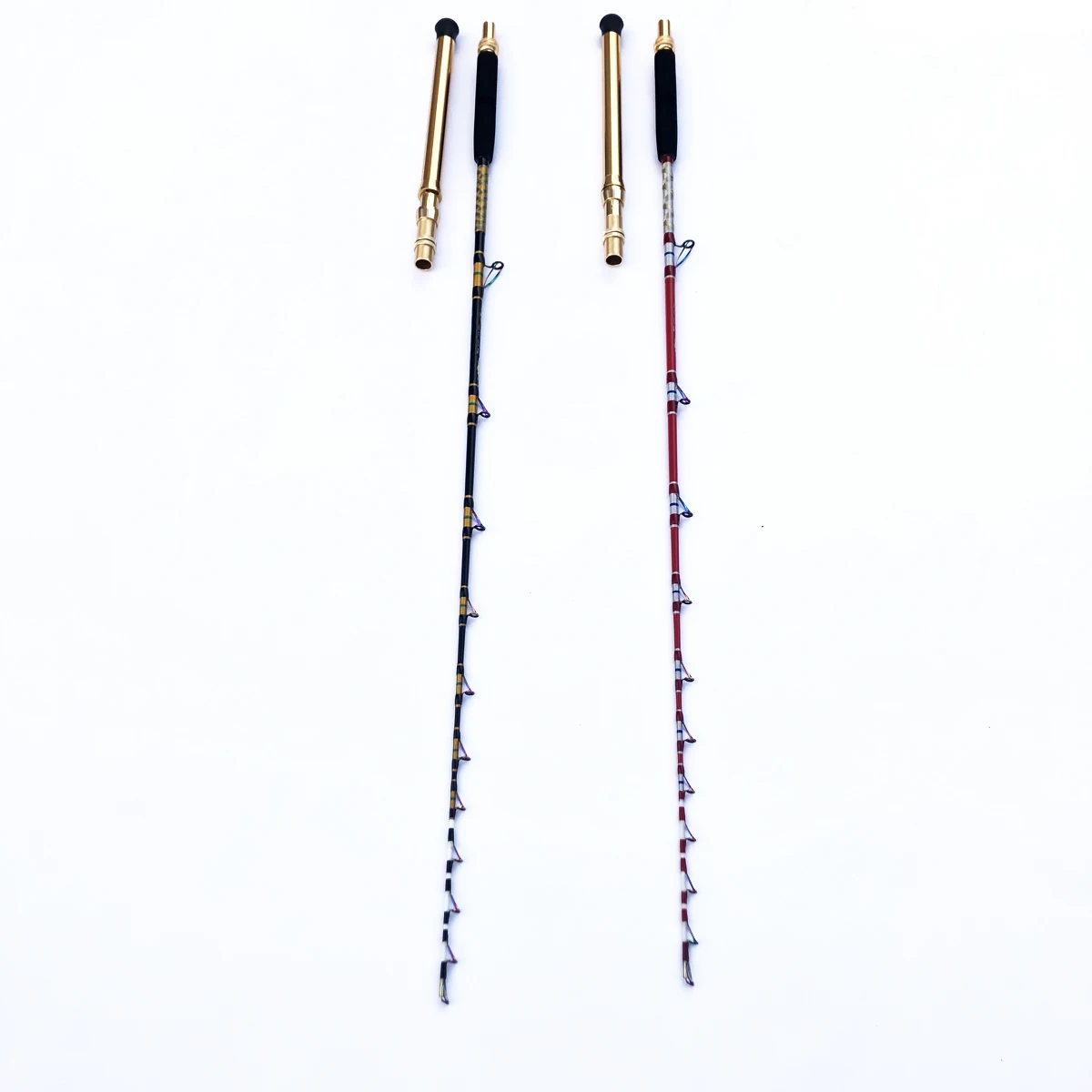 40-80LB, сверхмощное глубоководное рыболовное удилище для ловли на блесну, основной материал изготовлен из углеродного материала, а верхняя часть использует новую технологию (сочетание армированного стекловолокном пластика и углерода), что более жестко, Секция ручки изготовлена из всего металла, который прочнее и износостойче.