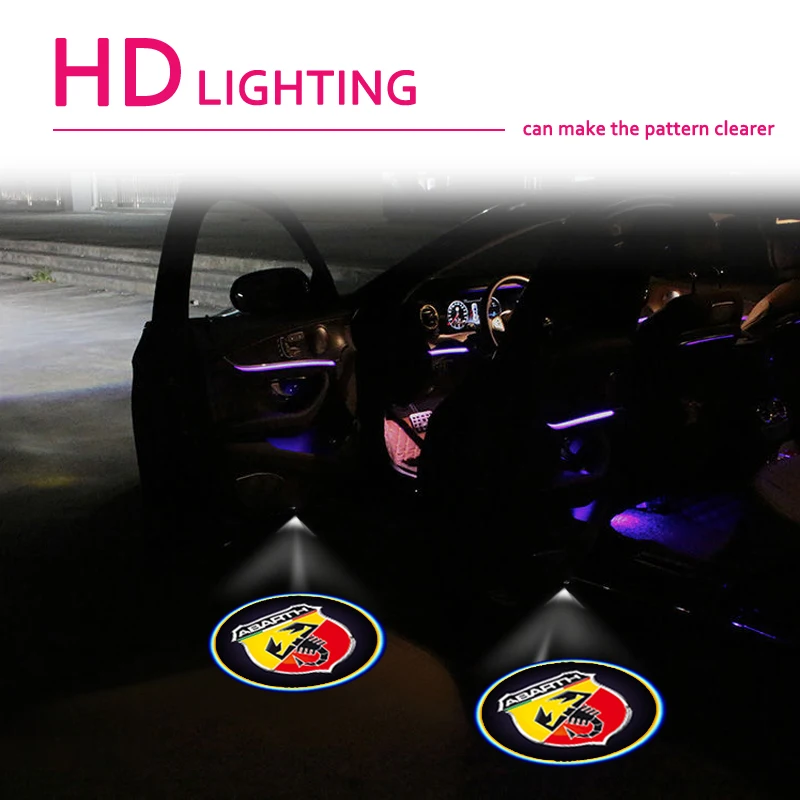 Декоративная светодиодная лампа для автомобиля, 2 шт., беспроводная лазерная лампа для привидения, тени, для Fiat 500, Abarth, Punto, Bravo, Stilo, Panda, Tipo и т. д.