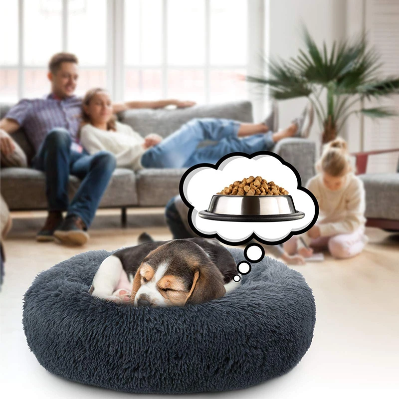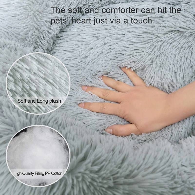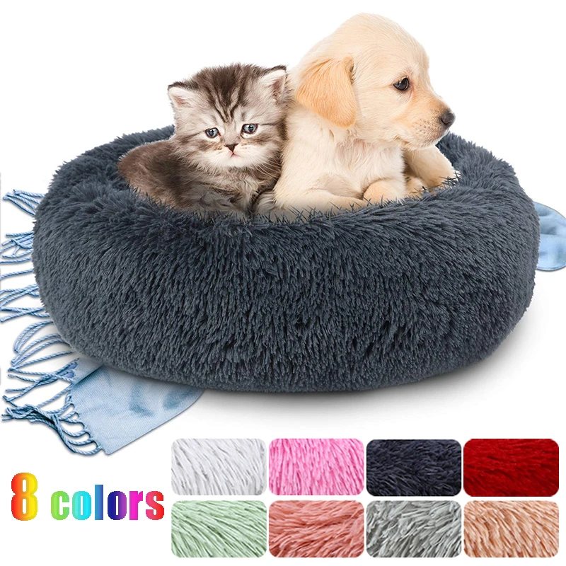 Товары для домашних животных, круглая кровать для кошек и собак, длинная плюшевая теплая корзина для сна, подушка для домашних животных, переносной домик для кошек, моющаяся кошачья кровать