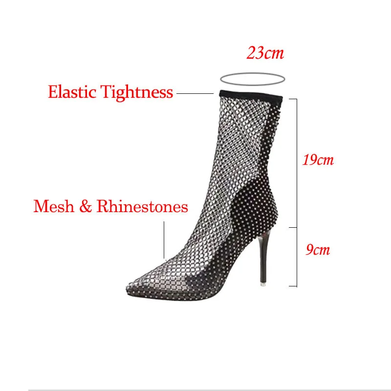 Стразы шикарные летние женские сексуальные туфли на высоком каблуке со стразами короткие сапоги-лодочки с кристаллами сетчатые туфли для женщин 2021 на шпильке