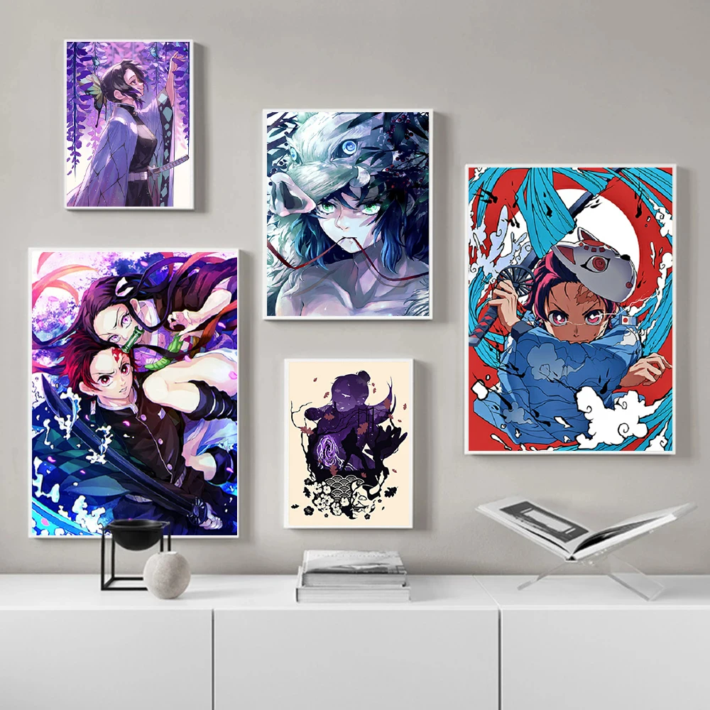 Постер в стиле аниме рассекающий демонов, современное оформление комнаты рам