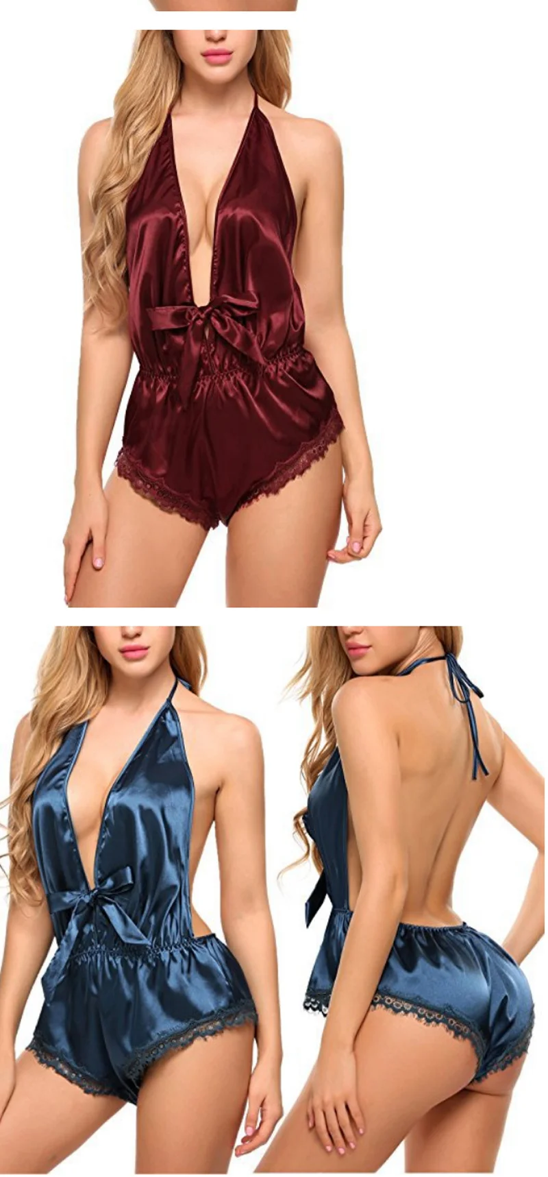 Шелковые пижамы с бантиком спереди, сексуальное атласное белье, ком...