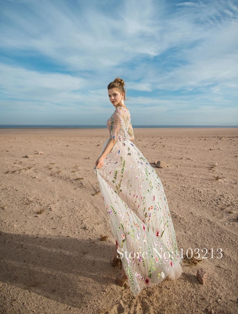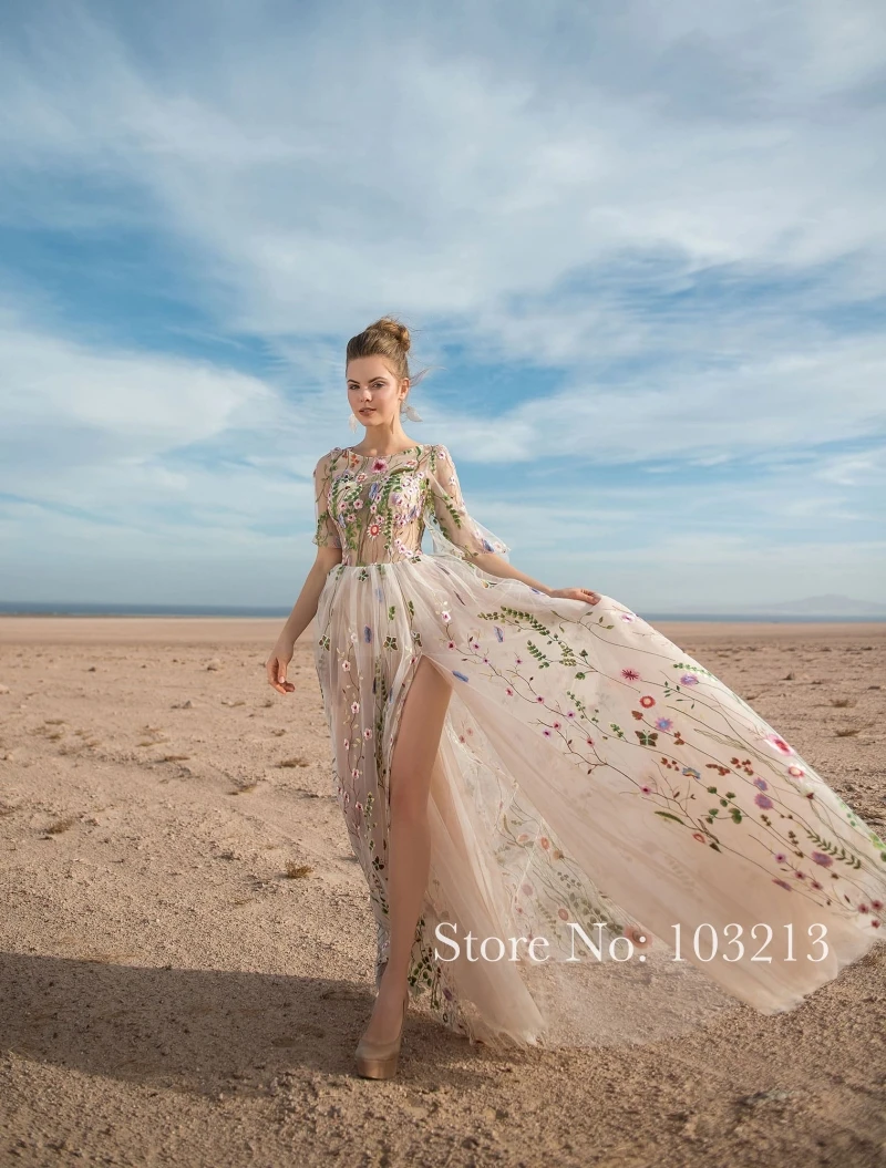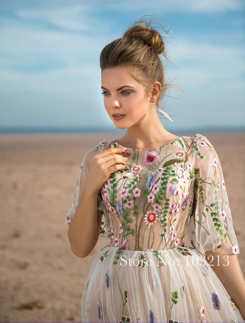 Изящный Прозрачный лиф с коротким рукавом, цветное кружевное 3D цветочное кружево, вышивка, свадебное платье, арабское пляжное свадебное платье