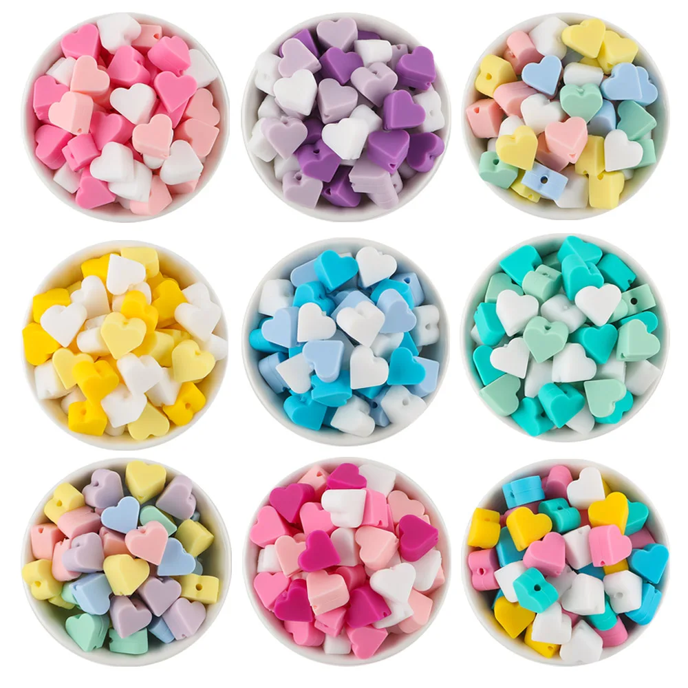 Kovict 30 шт. мини силиконовые бусины с сердечком для сердец пищевой силикон Прорезыватель для зубов DIY соски аксессуары для ожерелья жевательные игрушки для кормления